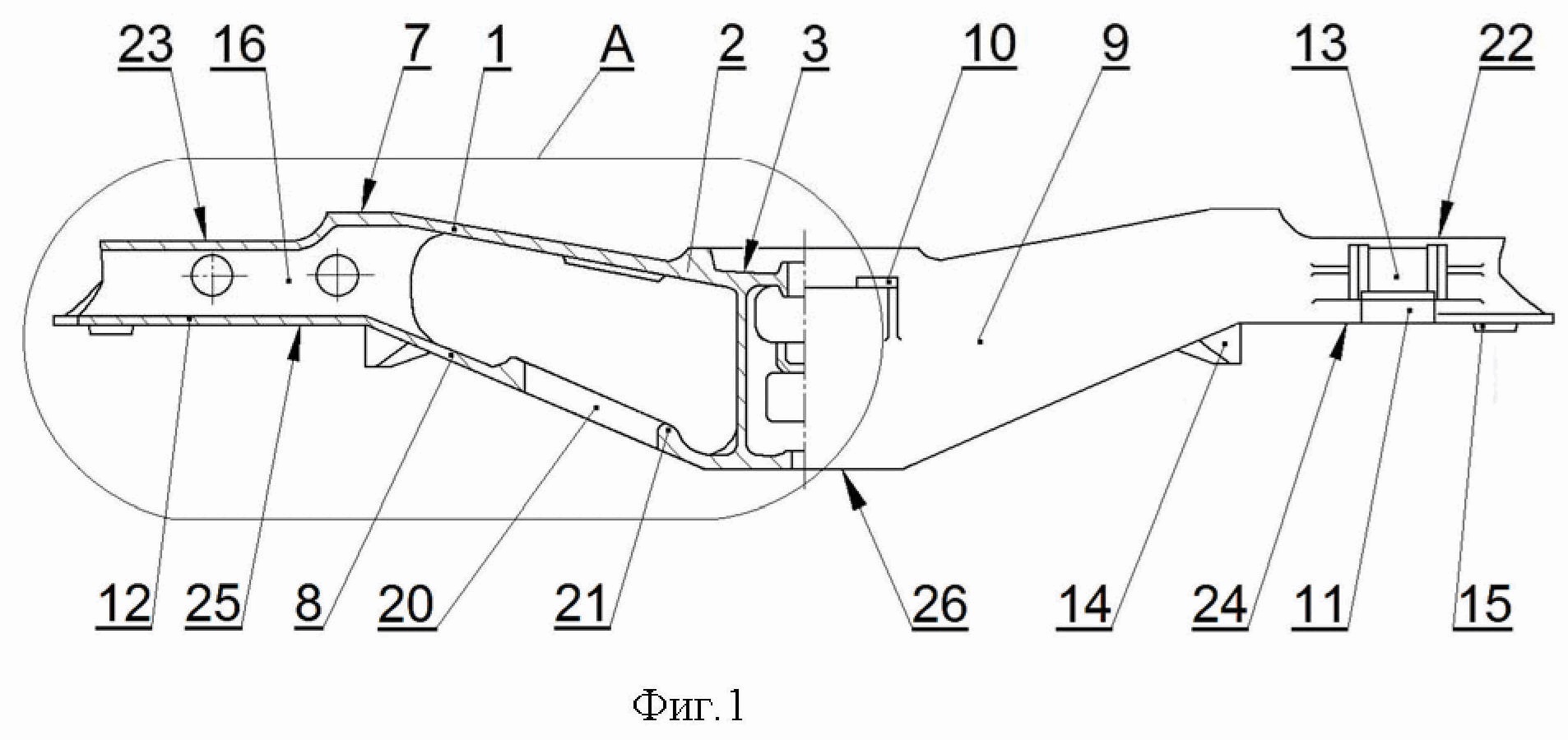 Полезная модель относится к железнодорожному транспорту и касается тележки грузового вагона, в частности к конструкциям надрессорных балок грузовых тележек. Известна конструкция надрессорной балки грузовой тележки [«Чертежи запасных деталей вагонов железных дорог колеи 1524 мм», изд. «ТРАНСПОРТ», Москва, 1970 г., стр. 184-189], представляющую собой стальную отливку коробчатого сечения с размерами в средней части высотой 385 мм (номинальный размер) и шириной 280 мм (номинальный размер). Надрессорная балка состоит из верхнего пояса с максимальной толщиной 25 мм (номинальный размер) и нижнего пояса с максимальной толщиной 25 мм (номинальный размер), соединенных между собой вертикальными стенками с максимальной толщиной 16 мм (номинальный размер). В средней части верхнего пояса выполнен подпятник, через который пятник кузова опирается на тележку, при этом опорная поверхность подпятника выполнена горизонтально и ограничена круговым буртом высотой 25 мм (номинальный размер) и толщиной 30 мм (номинальный размер). Также на верхнем поясе, между подпятником и концевым горизонтальным участком выполнены опоры для скользунов, причем участок верхнего пояса между подпятником и опорой скользуна имеет наклон в сторону опоры скользуна, верхний пояс уменьшается по толщине к опорам скользуна до 18 мм (номинальный размер). Кроме того, опорная горизонтальная поверхность подпятника возвышается над верхней поверхностью концевого горизонтального участка на расстояние 55 мм (номинальный размер). В надрессорной балке на концевых частях, выполнены выемки для размещения фрикционных клиньев, имеются опорные площадки под рессорные комплекты и внутри надрессорной балки выполнено внутренняя стенка. Для прочности подпятника узел усилен колонкой, в котором размещен поддон, являющимся опорой для шкворня. В верхнем и нижнем поясах выполнены технологические отверстия с буртами по периметру. Недостатком данной конструкции является возвышение опорной горизонтальной поверхности подпятника над верхней поверхностью концевого горизонтального участка, что не позволяет увеличить высоту хребтовой балки кузова вагона для повышения прочностных качеств экипажной части вагона, а также не позволяет увеличить объем кузова за счет увеличения высоты кузова, при вписывании его в габарит подвижного состава (габарит имеет ограничение по высоте и ширине). Вместе с этим, опорные площадки под рессорные комплекты не имеют выступов и ограничителей для исключения смещения наружных и внутренних пружин рессорного комплекта. Известна конструкция надрессорной балки с износостойкой защитой подпятника [Патент на полезную модель РФ № 186657 опубликован 28.01.2019, 28.01.2019, Бюл. № 4, B61F 5/50] в виде стальной отливки коробчатого сечения, содержащая верхний горизонтальный и нижний поясов, соединенных боковыми стенками. Балка имеет подпятниковое место, кронштейны для державки мертвой точки, технологические отверстия, площадки для установки скользунов, наклонные поверхности под клинья. Также имеются опорные площадки под рессорные комплекты, на каждой из которых есть выступы для ограничения перемещения двухрядных пружин. В средней части на каждой опорной площадке под рессорный комплект выполнены выступы, ограничивающие перемещение внутренних пружин. В направлении к подпятниковому месту и в конц