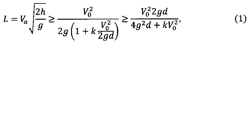 где Va - скорости движения агрегата; h - высота падения пласта почвы до дна борозды; g - ускорение свободного падения, м/с2; V0 - начальная скорость распыла, м/с; k - коэффициент сопротивления; d - диаметр насадки, м.