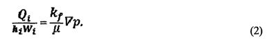 - градиент давления в трещине гидроразрыва (фиг. 1).
