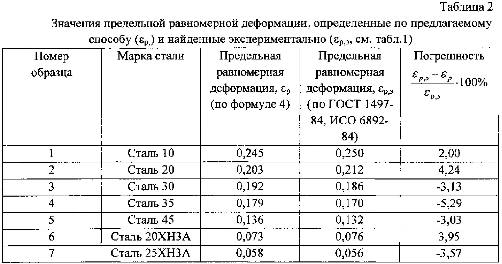 определяют предельную равномерную деформацию εр при статическом растяжении образца из испытуемого материала