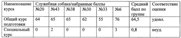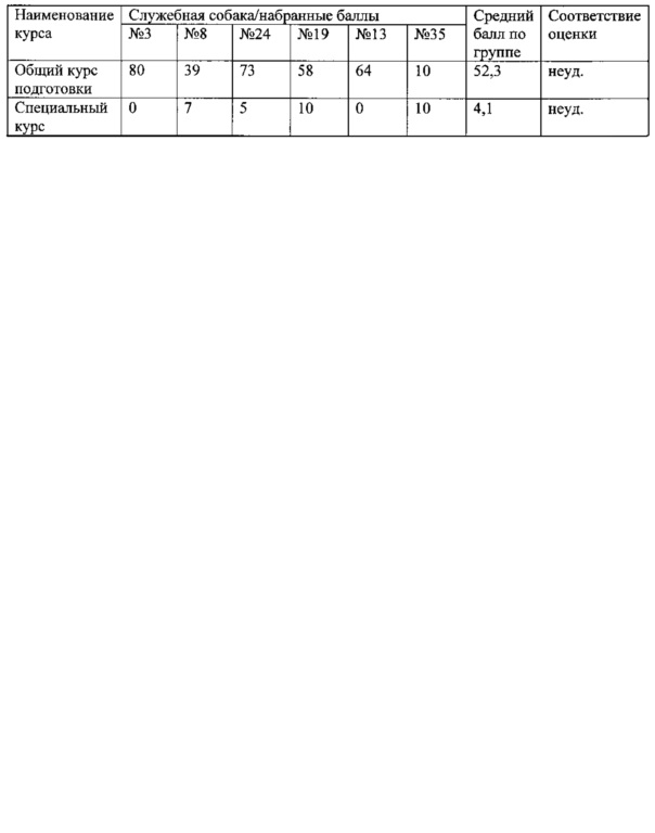 Способ определения рабочих качеств служебных собак путем установления степени стрессовой чувствительности собак на воздействие раздражителя, отличающийся тем, что в качестве раздражителя используют 50-60%-ный очищенный скипидар на вазелиновом масле в дозе 0,050-0,075 мл, который вводят внутрикожно в середину наружной поверхности ушной раковины животных и через 24-72 ч оценивают местную реакцию на введение препарата: при утолщении ушной раковины на 5,6 мм и более, диаметре припухлости 36,9 мм и более, повышении местной температуры кожи на 1,2°C и более собак относят к животным с низкими рабочими качествами; при отсутствии местной реакции или проявлении ее в слабой форме - утолщение ушной раковины не более 1,8 мм, диаметр припухлости не более 12,0 мм, при повышении температуры кожи не более 0,4°C - собак относят к животным с высокими рабочими качествами; при местной реакции со средними признаками - утолщение кожной складки до 4,1 мм, диаметре припухлости до 23,4 мм, повышении местной температуры кожи до 1,0°C - животных относят к группе с низкими рабочими качествами.