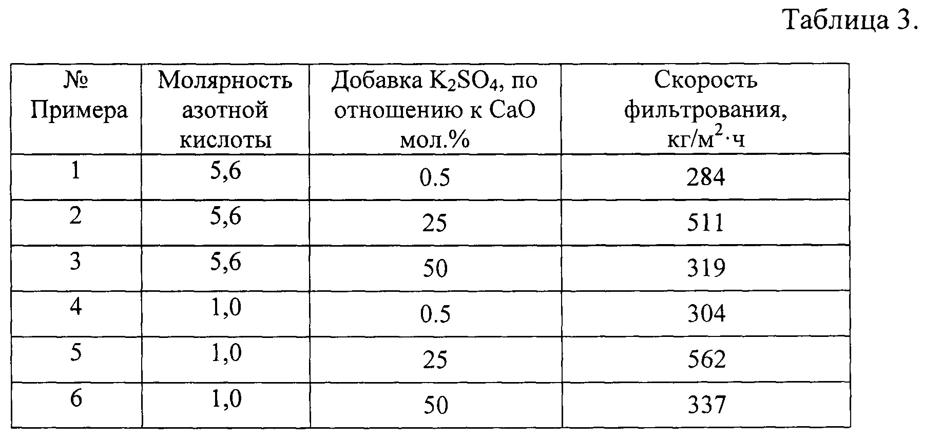 Способ кислотной переработки бедного фосфатного сырья, заключающийся в том, что сырье подвергают разложению 10÷40%-ным избытком 1,0÷5,6 молярной азотной кислоты, в которую предварительно добавляют 0,5÷50 мол.% сульфата калия по отношению к СаО, содержащемуся в исходном сырье; полученную при разложении суспензию фильтруют, нерастворимый осадок удаляют, при этом как процесс разложения, так и процесс фильтрования проводят при температуре 10÷35°C.