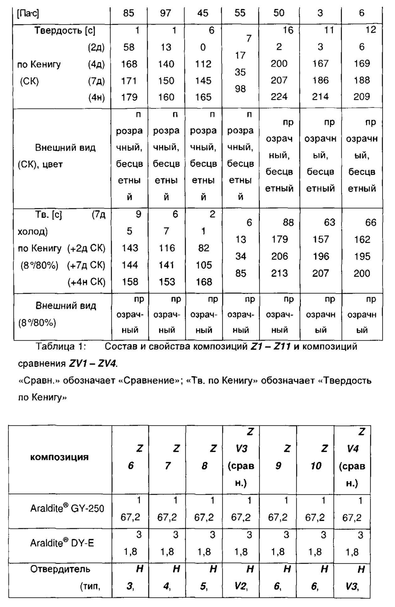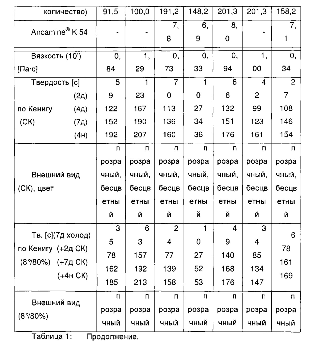 Область техники Настоящее изобретение относится к области аминов в качестве отвердителей для эпоксидных смол и аминосодержащих композиций эпоксидных смол и к применению указанных композиций, особенно в качестве покрытий. Уровень техники Композиции эпоксидных смол, чтобы быть пригодными в роли высококачественных покрытий, должны обладать рядом свойств. С одной стороны, они должны обладать низкой вязкостью, чтобы легко поддаваться обработке при температуре окружающей среды и самовыравниваться, и они должны быстро подвергаться отверждению без так называемых эффектов помутнения, даже во влажных холодных условиях. «Помутнение» означает развитие дефектов во время отверждения, таких как мутность, пятна и неровная или липкая поверхность, вызванное образованием солей аминов под действием диоксида углерода (СО2) воздуха, причем высокая влажность воздуха и низкие температуры способствуют возникновению эффектов помутнения. В полностью отвержденном состоянии покрытие на основе эпоксидной смолы должно иметь ровную поверхность без мутности, пятен или впадин и должно иметь высокую твердость и хорошую стабильность. Для достижения этих свойств в покрытиях на основе эпоксидных смол согласно известному уровню техники обычно применяют разбавители. Такие разбавители, например бензиловый спирт или фенолы, не включаются в матрицу смолы во время отверждения. Сегодня, тем не менее, существует растущая потребность в системах с низким уровнем выбросов, которые имеют низкое содержание веществ, которые могут высвобождаться благодаря процессам испарения или диффузии после отверждения. Таким образом, в системах с низким уровнем выбросов можно применять только малые количества веществ, которые могут высвобождаться благодаря процессам испарения или диффузии, или совсем нельзя применять указанные вещества. В US 2009/0163676 описаны композиции отвердителей, содержащие один или более бензилированных полиалкиленполиаминов и один или более дополнительных аминов. Не образуя аддукты с эпоксидами, указанные отвердители отверждают эпоксидные смолы только очень медленно, особенно в холодных условиях. Разумеется, частичное образование аддуктов с эпоксидами приводит к более быстрому отверждению, но при этом значительно увеличивается вязкость отвердителей. Описание изобретения Таким образом, задача настоящего изобретения заключается в обеспечении отвердителя для эпоксидных смол, который обладает низкой вязкостью, может хорошо перерабатываться совместно с эпоксидными смолами и может подвергаться отверждению даже в холодных, влажных условиях, быстро и без эффектов помутнения, с образованием покрытий, имеющих высокую твердость и стабильность. Неожиданно было обнаружено, что отвердители согласно п. 1, содержащие амины по меньшей мере с одной аминогруппой формулы (I), способны осуществить указанную задачу. Отвердители согласно п. 1 имеют слабый запах и хорошо совместимы с эпоксидными смолами. Вязкость указанных отвердителей неожиданно низкая, особенно по сравнению с другими аминами, которые вместо третичной аминогруппы содержат другую группу, активирующую фенильное кольцо, например гидроксильную группу (фенольную группу). Указанные отвердители имеют неожиданно слабую окраску, несмотря на способность исходных соединений легко изменять ц