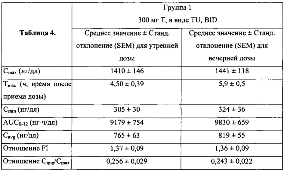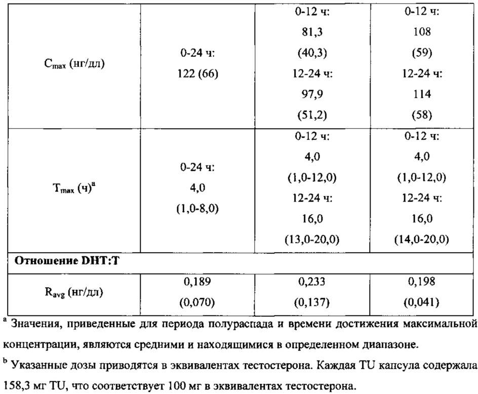 Изобретение касается оральной фармацевтической композиции для лечения недостатка тестостерона у мужчин, содержащей тестостерона ундеканоат, растворенный в носителе, содержащем, по меньшей мере, одно липофильное ПАВ и, по меньшей мере, одно гидрофильное ПАВ при соотношении суммарного количества липофильных ПАВ к суммарному количеству гидрофильных ПАВ (в/в), находящемся в диапазоне примерно от 6:1 до 3,5:1, при этом растворенный тестостерона ундеканоат составляет от 18 до 22 мас.% композиции. Изобретение также касается применения композиции для изготовления лекарственного средства для лечения недостатка тестостерона или его симптомов у мужчин и способа лечения, включающего оральный прием пациентом эффективного количества фармацевтической композиции. Использование изобретения дает возможность достижения более высокой биодоступности; обеспечения терапевтически эффективного продукта на основе тестостерона для перорального введения, который способен увеличивать уровни тестостерона в сыворотке крови до клинически эффективных, а также обеспечивать эффективную оральную тестостероновую терапию, в частности обеспечить средние уровни тестостерона в сыворотке в стационарном состоянии в диапазоне от 300 до 1100 нг/дл. 11 н. и 12 з.п. ф-лы, 10 табл., 5 пр., 5 ил.