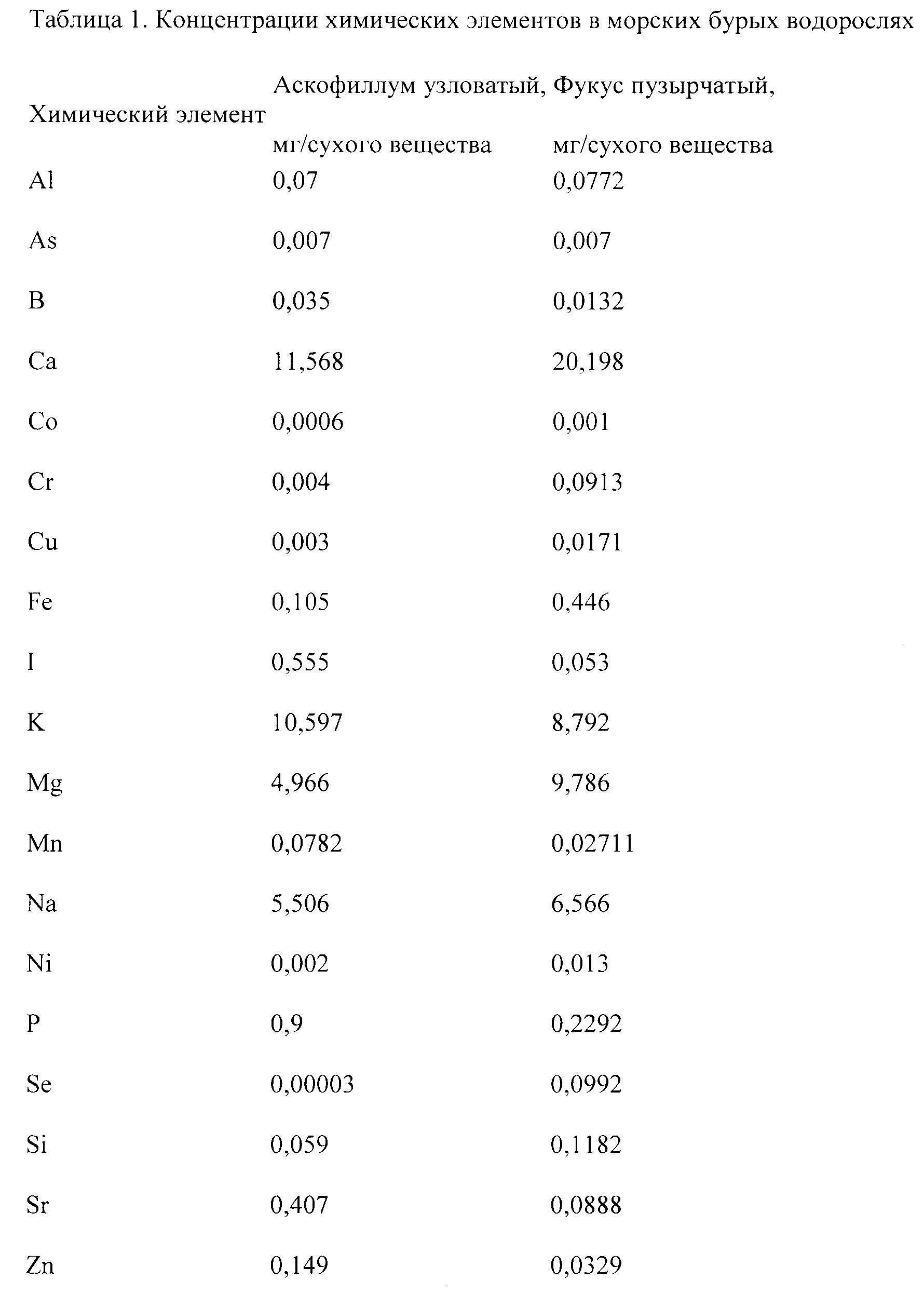 Изобретение относится к производству биологически активных добавок на основе препарата морских бурых водорослей, содержащих полисахариды, аминокислоты, витаминно-минеральный комплекс, и может быть использовано как функционально-активная биодобавка к пище для спортсменов и разных групп населения в качестве средства, влияющего на устранение соединительнотканной недостаточности и укрепляющего суставно-связочный аппарат. Известна биологически активная добавка к пище «Витальгин», содержащая витаминно-минеральный комплекс природного происхождения (СГР RU 77.99.11.003, Е.003427.02.15, ТУ 9284-056-00472012-2014). Биодобавка «Витальгин» получена на основе дальневосточной морской бурой водоросли ламинарии (морская капуста). Порошок морской капусты, содержащий органический йод и микроэлементы, обогащен глюкозой, витамином С и предназначен для устранения недостатка йода и лечения больных с заболеваниями щитовидной железы. Гель из бурых морских водорослей ламинарии и фукуса, полученный по патенту РФ №2343724, содержит биологически активные продукты, рекомендуемые для поддержания здоровья человека и лечения заболеваний желудочно-кишечного тракта, сердечно-сосудистой и эндокринной систем. Ламинария является одним из самых распространенных представителей бурых водорослей. Обитает в дальневосточных и северных морях. Другим представителем бурых водорослей является фукус. Бурые водоросли содержат вещества, необходимые организму человека, и используются для приготовления различных биологически активных препаратов. Биологически активная добавка «Кламин», разработанная на основе концентрата ламинарии (патент РФ №2034560), предназначена для антираковой терапии человека. При длительном пероральном применении «Кламин» тормозит развитие злокачественных и доброкачественных опухолей молочной железы, толстой и прямой кишки, пищевода, а также кожи индуцированных химическими канцерогенами животных. Лечебно-профилактические добавки «Фитолон» и «Кламин», полученные из экстрактов бурых водорослей ламинарии и фукуса пузырчатого (патент РФ №2132622), представляют собой комплекс полисахаридов, витаминов, минеральных веществ (в том числе селен, цинк, железо, калий, кальций, йод) и применяются в лечении желудочно-кишечного тракта, тракта, улучшают функциональную активность желудка, приводят к регрессии кишечной метаплазии и дисплазии. Лечебно-профилактическая добавка из морских водорослей-макрофитов (патент РФ №2384342) «Натив-гастро» рекомендована для лечения эрозивно-язвенных заболеваний и оздоровления пищеварительной системы. Другая биодобавка на основе этих же водорослей (фукус и аскофиллум) «Натив-комплекс» является эффективным средством для профилактики сердечно-сосудистых заболеваний, регуляции уровня сахара в крови, а также рекомендуется для пациентов с целиакией для лечения и профилактики метаболических расстройств. Оба препарата проверены в Центральной клинической больнице Академии наук РФ, где прошли клинические испытания. Наиболее близкой по технической сущности является биологически активная добавка к пище на основе денатурированного коллагена (Патент РФ №2489906), включающая коллагеновые белки и витамин C, которая согласно изобретению, дополнительно содержит витамин B6, витамин PP, кальция карбонат, железа сульфат, меди цитрат, магния ц