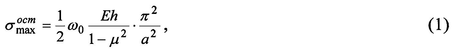 Способ определения остаточных напряжений при дробеструйной обработке деталей, включающий дробеструйную обработку поверхности контрольной пластины квадратной формы, изготовленной из материала обрабатываемой детали, измерение стрелы прогиба деформированной контрольной пластины, отличающийся тем, что максимальные остаточные напряжения в поверхностных слоях контрольной пластины определяют по формуле: где ω0 - стрела прогиба в центре контрольной пластины, вызванная действием остаточных напряжений, мм; Е - модуль упругости материала контрольной пластины, Н/м2; h - толщина контрольной пластины, мм; μ - коэффициент Пуассона материала контрольной пластины;