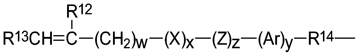 где R5 представляет собой водород или метил; R13 представляет собой водород, алкильный радикал, имеющий от 1 до 6 атомов углерода, или радикал -CO-Y-R15, в котором Y представляет собой -O-,Y-S- или -NH-; R14 представляет собой бивалентный радикал, имеющий от 1 до 5 атомов углерода; X означает -CO- или -OCO-; Z означает -O- или -NH-; Ar означает ароматический радикал, имеющий от 6 до 30 атомов углерода; w равно от 0 до 6; x равно 0 или 1; y равно 0 или 1; и z равно 0 или 1.