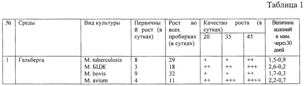 Изобретение относится к области ветеринарии и медицины, в частности к изолированию микобактерий при бактериологической диагностике туберкулеза. В настоящее время в лабораторной практике для культивирования микобактерий широко применяют простые или глицеринсодержащие и элективные - белковые и безбелковые (синтетические) питательные среды. К числу первых относят глицериновый картофель, глицериновый мясо-пептонный бульон и агар. К элективным белковым (Петраньяни, Гельберга, Левенштейна-Иенсена, Финн-2 и др.), синтетическим (безбелковым) - среда Сотона, Моделя и др. [3, 5]. Анализ данных по культивированию микобактерий не позволяет определить среду, состоящую из менее сложных субстратов, необходимых для развития и обеспечения оптимальных условий жизнедеятельности исследуемых бактерий. Существующие среды имеют многочисленные недостатки качественного характера, в частности низкая чувствительность и малая скорость роста, что в конечном итоге сказывается в качестве диагностики, идентификации и определении лекарственной чувствительности выделенных культур [2, 4]. Наиболее близкой к заявляемой среде по простоте изготовления и доступности является синтетическая среда Сотона Для приготовления 4,32 г порошка размешивают в 1000 мл дистиллированной воды, содержащей 20 мл глицерина. Кипятят для полного растворения частиц. Стерилизуют автоклавированием при 1,1 атм (121°С) в течение 15 мин [3]. Данная среда, являясь стандартной, содержит соли типа цитрата аммонийного железа и сульфата магния, которые необходимы для роста микобактерий в качестве источника неорганических ионов и азота, аспарагин добавляют для стимуляции роста микобактериальной клетки. Среда не содержит посторонних примесей, имеет значительное преимущество перед средами с органическими компонентами. Используют для определения колониеобразующих единиц (КОЕ) микобактерий, для получения микробной массы, при создании аллергенов, а также для культивирования ряда микробов с целью изучения протекающих в них процессов метаболизма, ассимиляции питательных веществ, для выяснения механизмов биосинтеза токсинов, антибиотиков, ферментов, для исследования действия антибиотиков, витаминов, незаменимых аминокислот на развитие бактерий. К недостаткам упомянутой среды является то, что она не может заменить среды, химический состав которой точно не определен, каковыми являются белковые или пептонные питательные среды. Этими средами пользуются при культивировании микобактерий, особенно при выделении их из организма животных, что объяснятся недостаточной изученностью метаболизма и питательных потребностей микобактерий [1]. Целью изобретения является повышения эффективности питательной среды для выделения и культивирования микобактерий за счет изменения состава среды. Поставленная цель достигается тем, что среда Сотона содержит дополнительно в качестве загустителя, а также источника минеральных солей и полисахаридов агар-агар в количестве 2%, а в качестве источника углеводорода (фактора роста) геотермальную воду. Техническая задача решается тем, что 4,32 г порошка, состоящего из: железа аммонийного цитрата - 0,0167, L-аспарагина - 1,330, лимонной кислоты - 0,660, магния сульфата - 0,166, калия гидрофосфата - 0,287, натрия дигидрофосфата - 0,633, натрия хлорида - 0,400, твин - 80-0,833, размешали в 1000 мл гео