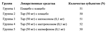 Родственные заявки В настоящей заявке заявляется приоритет предварительных заявок на патент U.S. рег. №№61/197,625, поданной 30 октября 2008 г., 61/205,312, поданной 21 января 2009 г., и 61/268,630, поданной 15 июня 2009 г., все они включены в настоящую заявку в качестве ссылки. Область техники, к которой относится изобретение Настоящее изобретение относится к фармацевтической лекарственной форме, которая содержит по меньшей мере одну форму тапентадола, с или без второго аналгезирующего средства, и по меньшей мере один антагонист опиоида, где указанный антагонист улучшает эффективность и уменьшает побочные действия тапентадола. Лекарственные формы включают лекарственные формы с быстрым высвобождением и с замедленным высвобождением по меньшей мере одной формы тапентадола и по меньшей мере одного антагониста опиоида, где указанный тапентадол находится в оптимальном или субоптимальном количестве. Предпосылки создания изобретения Тапентадол, 3-(3-Диметиламино-1-этил-2-метил-пропил)-фенол) является аналгезирующим средством с центральным действием с двойным типом действия: агонизм рецептора mu-опиоида и ингибирование обратного захвата норадреналина. Его двойной тип действия обеспечивает обезболивание на уровнях, сходными с уровнями с более эффективными наркотическими аналгезирующими средствами, такими как гидрокодон, оксикодон, и морфин, с более переносимым профилем побочных действий. Тапентадол впервые был открыт и заявлен в европейском патенте №ЕР 693,475, патенте US 6,248,737 и патенте US RE39,593. Фармацевтическая композиция тапентадола с быстрым высвобождением разрешена к применению Управлением США по надзору за качеством пищевых продуктов и лекарственных средств (United States Food and Drug Administration, заявка на регистрацию нового препарата №22-304. Существует много классов аналгезирующих соединений, используемых для лечения острой и хронической боли. Они включают ацетаминофен, НПВС, такие как напроксен, мелоксикам и др., CINODS, такие как напроксцинод, опиаты, такие как морфин, трамадол, тапентадол, оксикодон и др., аналоги ГАМК, такие как прегабалин, и ингибиторы обратного захвата серотонина и норэпинефрина (SNRI), такие как дулоксетин и др. Прегабалин, аналог ГАМК, представляет собой противосудорожное лекарственное средство, используемое при невропатической боли, в качестве вспомогательной терапии при парциальных припадках, и при генерализированном тревожном расстройстве. Прегабалин создан в качестве более эффективного супрессора к габапентину и он выпускается на рынок Pfizer под торговой маркой Lyrica®. В целом, прегабалин уменьшает высвобождение определенных нейромедиаторов, включая глутамат, норадреналин, и вещество Р. Габапентин является другим аналогом ГАМК, сходным с прегабалином, и изначально он был синтезирован для имитирования химической структуры нейромедиатора гамма-аминомасляная кислота (ГАМК), но не предполагалось его действие на аналогичные рецепторы головного мозга. Точный механизм его действия неизвестен, но полагают, что его терапевтическое действие на невропатическую боль задействует потенциалзависимые кальциевые ионные каналы N-типа. Полагают, что это обусловлено связыванием с α2δ субъединицей потенциалзависимого кальциевого канала в центральной нервной системе. НПВС нестероидные противовоспалительные лекарственные средства (НПВС) включ