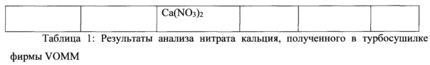 Область техники, к которой относится изобретение Настоящее изобретение относится к способу получения безводного порошка нитрата кальция. Нитрат кальция обозначается как CN и имеет химическую формулу Ca(NO3)2. Данное изобретение относится также к безводному порошку нитрата кальция, более конкретно, к порошку, полученному упомянутым выше способом. Настоящее изобретение относится также к применению промышленной турбосушилки для получения такого безводного порошка нитрата кальция. Уровень техники Нитрат кальция стал крупномасштабным и ценным продуктом в области производства удобрений, а также в других областях техники, таких как обработка сточных вод, производство бетона и т.п. Твердый кристаллический нитрат кальция обычно существует в виде гидратов, таких как Ca(NO3)2⋅4H2O, Ca(NO3)2⋅3H2O и Ca(NO3)2⋅2H2O. Ca(NO3)2⋅4H2O является распространенной солью с температурой плавления 42°C. Он содержит 68-69 вес. % нитрата кальция и примерно 30 вес. % воды. Традиционный способ получения тетрагидрата нитрата кальция [Ca(NO3)2⋅4H2O] состоит в кристаллизации раствора с высоким содержанием нитрата кальция, который охлаждают до температуры ниже температуры насыщения тетрагидратом нитрата кальция. Затем раствор отфильтровывают, благодаря чему влажные кристаллы тетрагидрата нитрата кальция отлагаются на фильтре. Эти кристаллы удаляют с фильтра и сушат в вакууме при температуре ниже 40°C. Коммерчески доступным является приллированный или гранулированный нитрат кальция. Этот материал обычно содержит между 77 и 80 вес. % Ca(NO3)2, между 6 и 8 вес. % нитрата аммония (AN) и между 14 и 17 вес. % кристаллизационной воды. В этом продукте соль AN*5CN*10H2O, обозначаемая как 1:5:10, составляет основную часть. Приллированный или гранулированный нитрат кальция получается при образовании частиц (например, сферических частиц, гранул) из расплава нитрата кальция нитрата аммония и воды. Обычно такой расплав помимо нитрата кальция содержит воду в количестве между 15 и 18 вес. % и нитрат аммония в количестве между 5 и 8 вес. %. Нитрат аммония и вода необходимы для образования расплава при температуре примерно 100-110°C. Нитрат аммония необходим для достижения быстрого затвердевания расплава. Если нитрат аммония удалить, процесс затвердевания протекает так медленно, что способы обычного приллирования или гранулирования не могут быть применены. В заявке WO 2004/039722 описан способ получения нитрата, содержащего продукты из недоохлажденных расплавов. Более конкретно, для отверждения частиц применяется охлаждающий ленточный транспортер. Этот способ используют для получения нитрата кальция в виде сферических частиц, гранул или пластинок наряду с прочими продуктами. Этот способ не применяется для получения чистого нитрата кальция без кристаллизационной воды, так как температура плавления чистого безводного нитрата кальция составляет более 500°C. Однако в некоторых областях существует необходимость в наличии чистого безводного нитрата кальция, то есть, нитрата кальция, не содержащего нитрата аммония, любых других солей и кристаллизационной воды. В патенте GB 392,531 описан способ получения неслипающихся удобрений, содержащих нитрат кальция, согласно которому растворы нитрата кальция выпаривают до получения консистенции песчаной пасты, в которой содержится примерно 90-95% нитрата кальция (в расчете на безводный нитрат к