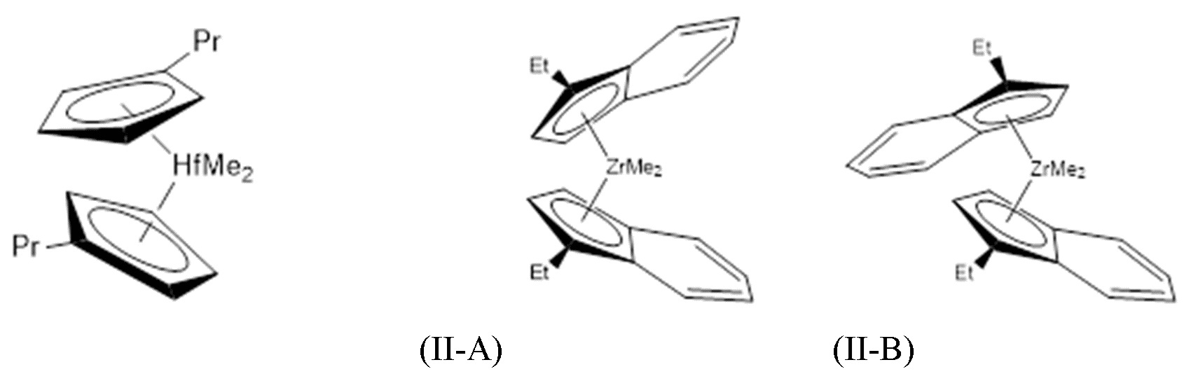 Родственные заявки Настоящая заявка испрашивает приоритет согласно предварительным заявкам на патент США, имеющим следующие серийные номера: серийный номер 61/938466, Ching-Tai Lue et al., поданная 11 февраля 2014 года (2014U002.PRV); серийный номер 61/938472, Ching-Tai Lue et al., поданная 11 февраля 2014 года (2014U003.PRV); серийный номер 61/981,291, Francis C. Rix et al., поданная 18 апреля 2014 года (2014U010.PRV); серийный номер 61/985151, Francis C. Rix et al., поданная 28 апреля 2014 года (2014U012.PRV); серийный номер 62/032383, Sun-Chueh Kao et al., поданная 1 августа 2014 года (2014U018.PRV); серийный номер 62/087905, Francis C. Rix et al., поданная 5 декабря 2014 года (2014U035.PRV); серийный номер 62/088196, Daniel P. Zilker, Jr. et al., поданная 5 декабря 2014 года (2014U036.PRV), серийный номер 62/087911, Ching-Tai Lue et al., поданная 5 декабря 2014 года (2014U037.PRV), и серийный номер 62/087,914, Francis C. Rix et al., поданная 5 декабря 2014 года (2014U038.PRV), полное описание которых включено в настоящий документ посредством ссылки. Уровень техники Сополимеры этилена и альфа-олефина (полиэтилен) обычно получают в реакторе низкого давления, используя, например, растворный, суспензионный или газофазный процесс полимеризации. Полимеризация происходит в присутствии каталитических систем, таких как системы с применением, например, катализатора Циглера-Натта, катализатора на основе хрома, металлоценового катализатора или их комбинаций. Для получения сополимеров полиэтилена используют множество каталитических композиций, содержащих катализатор с единым центром полимеризации, например, металлоценовый катализатор, с получением относительно однородных сополимеров с хорошей скоростью полимеризации. В отличие от традиционных композиций катализатора Циглера-Натта, композиции катализатора с единым центром полимеризации, такие как металлоценовые катализаторы, представляют собой каталитические соединения, в которых каждая молекула катализатора содержит один или лишь несколько центров полимеризации. Катализаторы с единым центром полимеризации зачастую обеспечивают получение сополимеров полиэтилена, которые имеют узкое молекулярно-массовое распределение. Хотя существуют катализаторы с единым центром полимеризации, которые обеспечивают получение более широкого молекулярно-массового распределения, такие катализаторы зачастую демонстрируют сужение молекулярно-массового распределения (MWD) при повышении температуры реакции, например, для повышения производительности. Кроме того, катализатор с единым центром полимеризации зачастую обеспечивает внедрение сомономера в молекулы сополимера полиэтилена с относительно равномерной скоростью. Распределение состава (CD) сополимера этилена и альфа-олефина относится к распределению сомономера, который образует короткие боковые цепи, среди молекул, которые образуют полимер полиэтилена. Если количество коротких боковых цепей варьируется среди молекул полиэтилена, то о смоле говорят, что она имеет «широкое» распределение состава. Если количество сомономера на 1000 атомов углерода является одинаковым среди молекул полиэтилена с разной длиной цепи, то распределение состава называют «узким». В данной области техники общеизвестно, что MWD и CD полиолефинов влияют на различные свойства продукта. Для снижения или предотвращения определенного ухудшения требуемых характеристик в промышленности полиолефинов все более важными становятся бимодальные полимеры, и такой тип продук