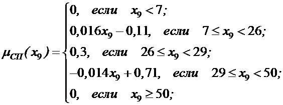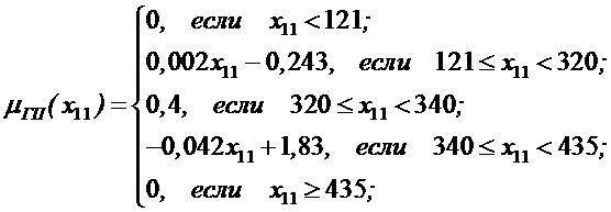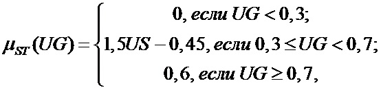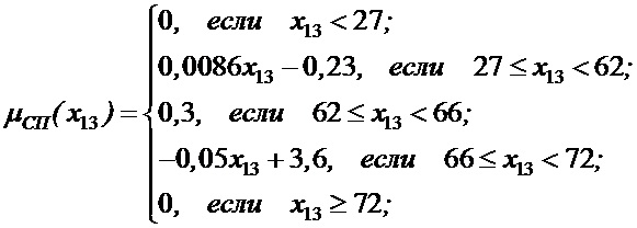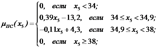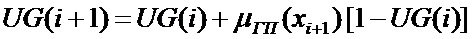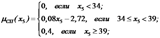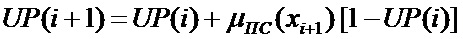Способ дифференциальной диагностики форм пиелонефрита и оценки степени их тяжести, заключающийся в проведении лабораторных исследований крови, отличающийся тем, что определяются показатели оксидантного статуса крови в составе признаков: малоновый диальдегид – X1, ацилгидроперекись – X2, супероксиддисмультаза – X3, каталаза – Х4, цитокиновый спектр плазмы крови в составе признаков: IFNα – X5, IL – Iα – X6, IL – 6 – X7, IL – 8 – X8; IFNα- X9; IL – 10 – X10; IL – IRA – X11; функционально-метаболическая активность нейтрофилов периферической крови в составе признаков: активность и интенсивность фагоцитоза Х12, активность кислородозависимых систем – Х13, по которым определяются функции принадлежности к классам серозный пиелонефрит для класса гнойный пиелонефрит (µСП) функции принадлежности имеют вид: и для переходного класса µПС функции принадлежности описываются выражениями: при этом решение о классификации где где при этом степень тяжести форм пиелонефрита определяется непрерывной шкалой от 0 до 1, причем нулю соответствует легкая степень, а единица – самая тяжелая ее степень.
