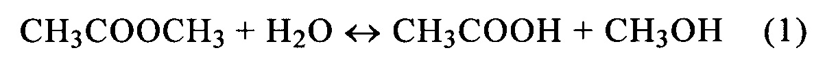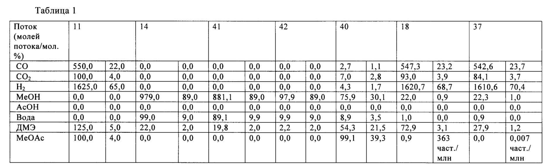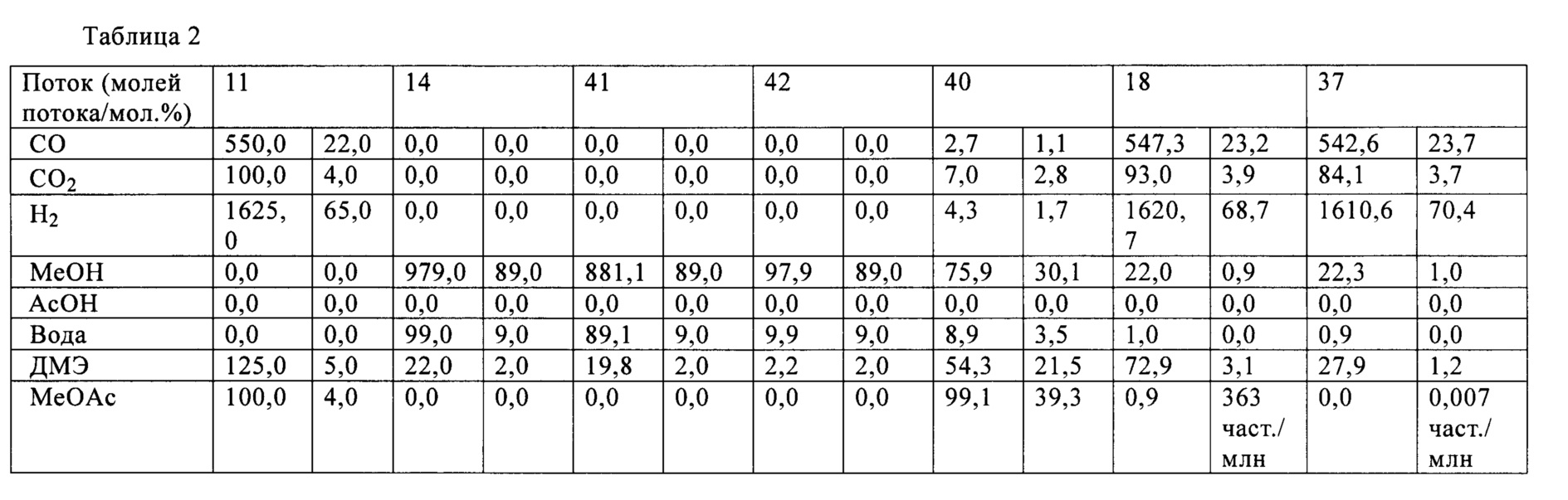 Настоящее изобретение относится к получению очищенных потоков воды в способах получения диметилового эфира из газообразных смесей монооксида углерода и водорода, загрязненных метилацетатом, и, в частности, получению очищенных потоков воды из газообразных смесей монооксида углерода и водорода, загрязненных метилацетатом, в способах совместного получения уксусной кислоты и диметилового эфира из метанола и метилацетата. В WO 96/248408 описан способ получения и извлечения диметилового эфира с помощью дегидратации метанола, в котором уменьшены происходящие при дистилляции затруднения, связанные с получением свежего метанольного сырья и/или извлечением непрореагировавшего метанола для использования в качестве рециклового исходного сырья для способа получения диметилового эфира при поддержании высокой степени превращения метанола в диметиловый эфир. В GB 2253623 описан способ получения диметилового эфира путем загрузки синтез-газа в реактор с каталитической композицией и отбора содержащего диметиловый эфир выходного потока, в котором диоксид углерода, полученный из выходящего из реактора потока, рециркулируют в реактор. Способы совместного получения уксусной кислоты и диметилового эфира можно провести с помощью каталитической дегидратации и гидролиза смесей метанола и метилацетата. Такие способы совместного получения описаны, например, в WO 2011/027105. В WO 2011/027105 описаны способы совместного получения уксусной кислоты и диметилового эфира путем взаимодействия метанола метилацетата с каталитической композицией при температуре в диапазоне от 140 до 250°C, где каталитическая композиция содержит цеолит, включающий 2-мерную систему каналов, содержащую по меньшей мере один канал, который содержит 10-членное кольцо. В таких способах дегидратации-гидролиза метанол дегидратируется с образованием диметилового эфира и метилацетат гидролизуется с образованием уксусной кислоты. Реакции можно описать следующим образом: 2 метанол ↔ диметиловый эфир + вода метилацетат + вода уксусная кислота + метанол Эти реакции ограничиваются равновесием. В реакции гидролиза расходуется вода и образуется метанол и в реакции дегидратации расходуется метанол и образуется вода. Согласно изобретению было установлено, что в присутствии твердых кислотных катализаторов, таких как цеолиты, реакция дегидратации является относительно медленной и поскольку вода в реакции гидролиза расходуется быстрее, обычно в систему необходимо подавать воду для поддержания равновесной концентрации воды в реакции. Воду можно добавить в систему дегидратации-гидролиза в качестве компонента технологических потоков, таких как содержащая воду загрузка и рецикловые потоки. Обычно, метанол полученный в промышленных технологиях синтеза, содержит воду и также может содержать некоторое количество диметилового эфира. Количество воды в метанольном продукте может меняться при изменении таких факторов, как состав загрузки в систему и условия проведения способа, и, в частности, количества диоксида углерода, использующегося в способе синтеза метанола. Таким образом, количество воды, содержащееся в загрузках, в особенности в загрузках метанола, подаваемых в системы дегидратации-гидролиза, может быть субоптимальным для поддержания или оптимизации операций в таких системах. Кр
