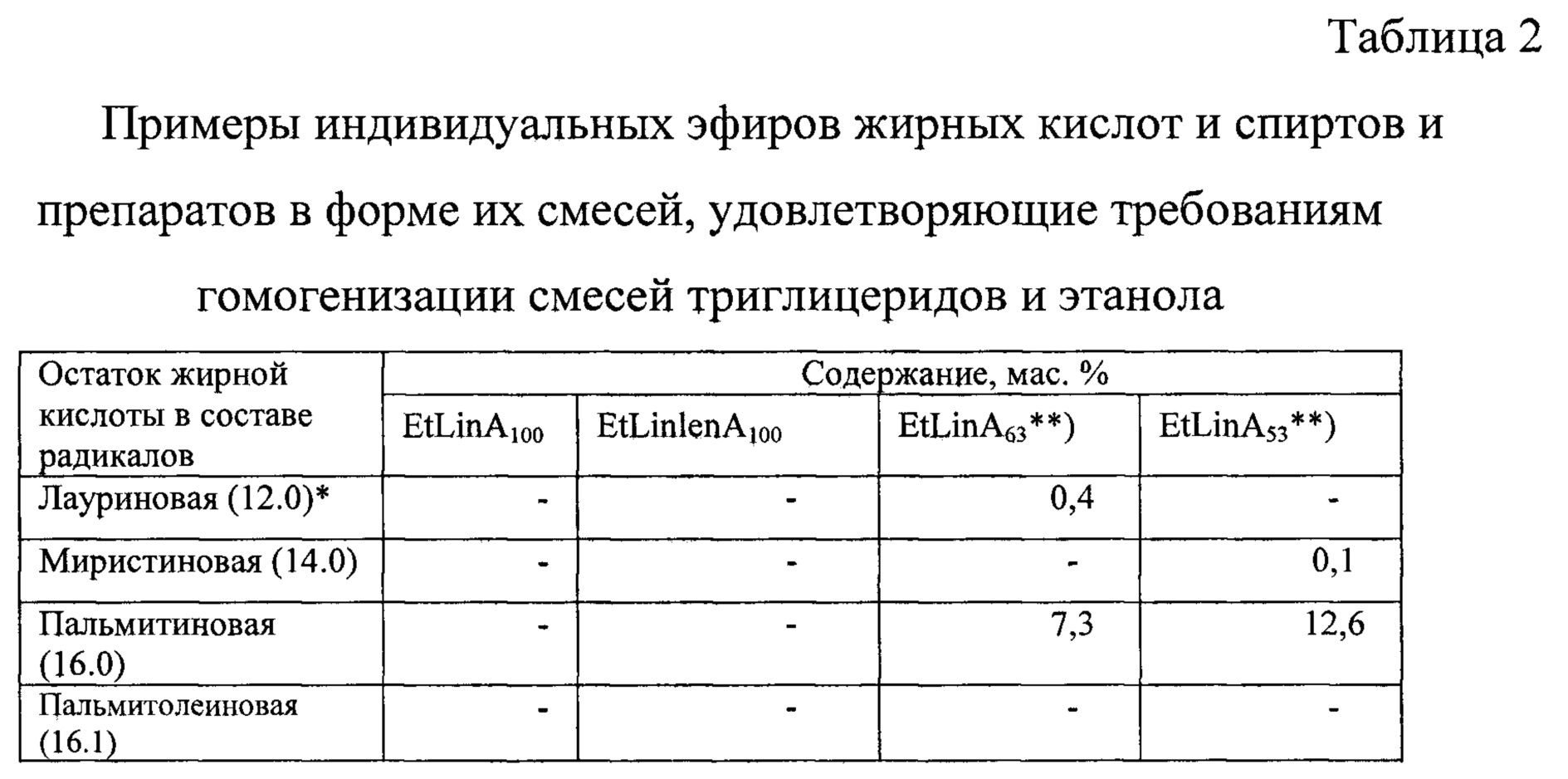 Способ получения этиловых эфиров жирных кислот из жиросодержащих отходов путем проведения одностадийной операции, включающей совмещенные кислотно-катализируемые реакции этерификации свободных жирных кислот и переэтерификации триглицеридов этанолом при температуре 70-75°C с использованием серной кислоты в качестве катализатора, отличающийся тем, что совмещенные кислотно-каталитические реакции проводят в гомогенизированных реакционных системах, гомогенизацию которых достигают с помощью смесей этиловых эфиров жирных кислот с содержанием не менее 50% полиненасыщенных углеводородных радикалов с количеством двойных связей две или более, кислотно-катализируемые реакции проводят в системах с концентрацией катализатора 1,5-2% мас., при массовом отношении триглицериды : этанол от 1:6 до 1:10 и содержании воды в этаноле до 3,8% мас.