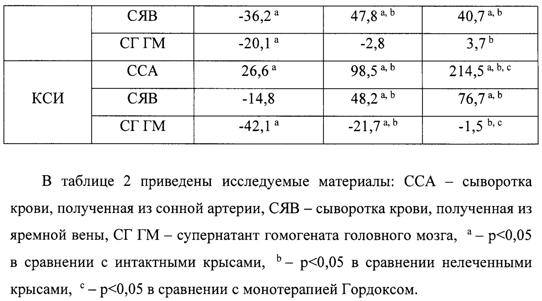 Изобретение относится к медицине, а именно к экспериментальной патофизиологии, неврологии и медицине чрезвычайных ситуаций, и может быть использовано для профилактики повреждения нервной системы при экспериментальной ишемии и реперфузии тканей. Моделируют патологию путем наложения резиновых жгутов на обе задние конечности животных на уровне паховой складки. За 30 минут перед реваскуляризацией тканей вводят препарат Гордокс из расчета 10000 КИЕ/кг массы тела животного однократно внутрибрюшинно. Дополнительно через 5 минут после введения препарата Гордокс вводят препарат Церебролизин из расчета 0,7 мл/кг массы тела животного однократно внутрибрюшинно. Оценивают состояние протеиназ-ингибиторной системы в сыворотках крови из сонных артерий и яремных вен. Проводят оценку состояния протеиназ-ингибиторной системы в супернатантах гомогенатов головного мозга. Оценивают патоморфологические изменения головного мозга. Способ обеспечивает эффективную профилактику повреждения нервной системы при реперфузионном синдроме в эксперименте за счет сочетанного действия препаратов. 2 табл.
