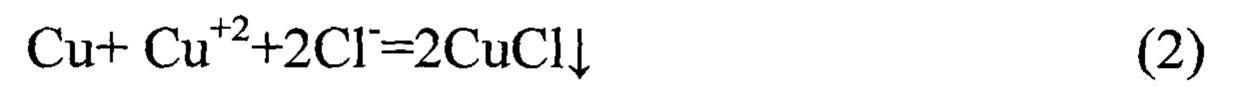 Изобретение относится к гидрометаллургии меди и может быть использовано при переработке растворов, получаемых при выщелачивании медных руд, концентратов и других промышленных отходов, содержащих медь. В настоящее время в гидрометаллургии меди переработку природных (руды) или техногенных продуктов (штейны, файнштейны) осуществляют путем их окислительного выщелачивания с получением растворов соответствующих сульфатов. В частности, при выщелачивании медно-никелевых файнштейнов получают сульфатные растворы, содержащие Cu+2, Ni+2, Co+2, Fe+3. Их переработка включает выделение меди в виде чистого раствора CuSO4 за счет жидкостной экстракции с последующим переделом на катодную медь электролизом с нерастворимым анодом. В настоящее время в гидрометаллургии меди переработку природных (руды) или техногенных продуктов (штейны, файнштейны) осуществляют путем их окислительного выщелачивания с получением растворов соответствующих сульфатов. В частности, при выщелачивании медно-никелевых файнштейнов получают сульфатные растворы, содержащие Cu+2, Ni+2, Co+2, Fe+3. Их переработка включает выделение меди в виде чистого раствора CuSO4 за счет жидкостной экстракции с последующим переделом на катодную медь электролизом с нерастворимым анодом. Известен «Способ восстановления меди из сульфидных соединений, включающий обработку сульфидного медного материала натриевой щелочью, отличающийся тем, что сульфидный медный материал смешивают с дисперсным металлическим алюминием и обрабатывают водным раствором щелочи в режиме перколяции, при этом содержание щелочи в водном растворе составляет 20-40 г/л, а расход щелочного раствора устанавливают на уровне, обеспечивающем содержание сернистого натрия в продуктивном растворе 40-50 г/л. Патент РФ на изобретение №2710810 МПК: C22B 15/00, д.публ. 14.01.2020 Известен «Способ выделения меди в виде хлорида меди из минерального сырья, включающий хлорирование исходного сырья и отгонку и сублимацию хлорида меди, отличающийся тем, что сублимацию ведут при температуре выше 365°С в токе инертного газа с переходом хлорида меди в газовую фазу в виде хлорида меди (I). Патент РФ на изобретение №2458163 МПК: C22B 15/00, д. публ. 10.08.2012. Известен «Способ получения хлорида меди (I) CuCl из сульфатно-хлористого раствора путем его обработки окисью углерода при атмосферном давлении и температуре 20-60°С, причем в качестве исходного используют раствор при соотношении в нем иона хлора к иону двухвалентной меди, равном 1,10÷1,15, отличающийся тем, что обработку исходного раствора проводят технологическими газами, а именно водяным газом, содержащим моноксид углерода СО, при интенсивном перемешивании в течение трех часов, с добавлением в исходный раствор хлорида меди (I) в виде CuCl или в форме хлорокомплекса меди (I) -CuCl2- при соотношении ионов меди Cu(I):Cu(II), равном 0,1÷0,5%. Патент РФ на изобретение №2567609 МПК: C01G 03/05, д. публ. 27.08.2015. Известно «Селективное выделение меди при гидрокарбонилировании сульфатно-хлоридных растворов цветных металлов» статья Федосеев И.В., Максимов В.В. «Цветные металлы» 2005 г. №8, стр. 22-25. Способ заключается в сочетании процесса гидрокарбонилирования, приводящего к удалению из раствора ~95% меди, с операцией доводки путем обработки раствора порошком меди, что позволяет технологически полностью удалить медь из растворов, содержащих Fe, Ni, Co и другие тяжелые цв