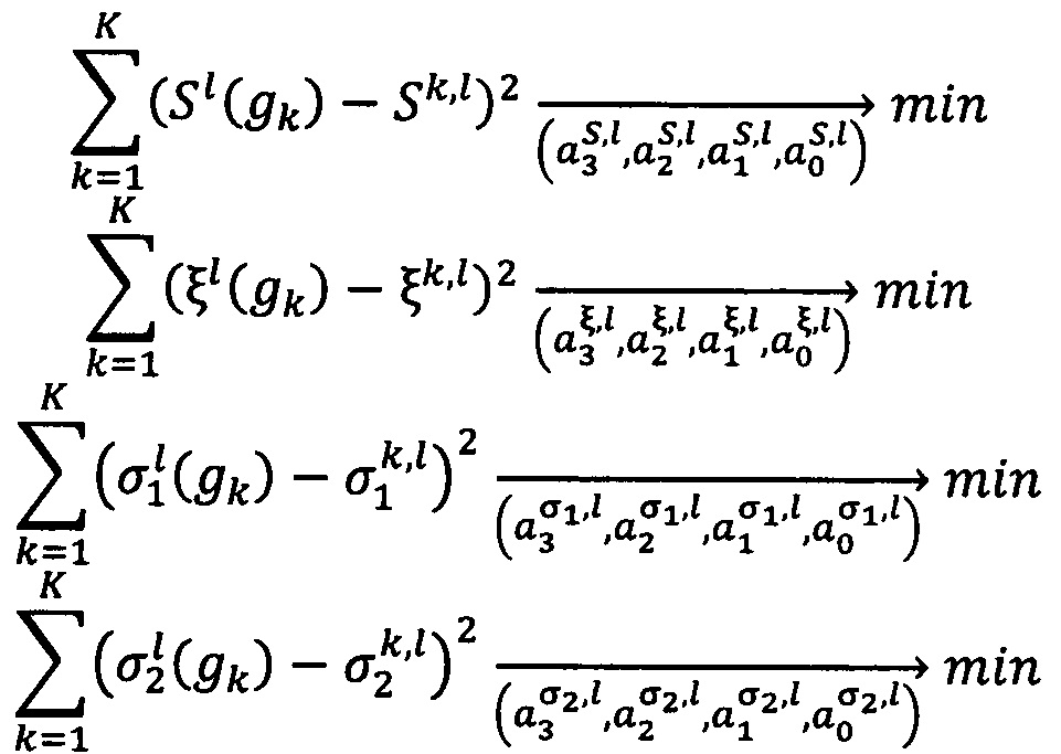- параметры полиномов третьей степени вычисляются путем минимизации функционалов: