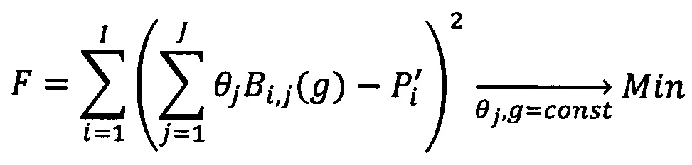 соответствующие k-му уровню гашения, вычисляются путем минимизации функционала: