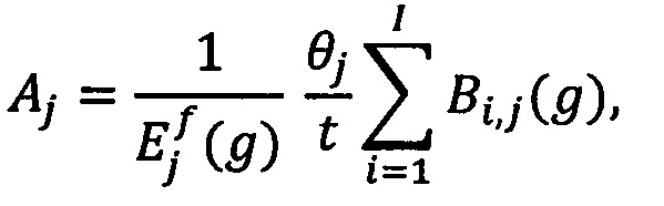 для l-й энергетической линии j-го радионуклида определены в (4), эффективность измерения Ej(g) для j-го радионуклида для известного гашения g=const определено в (8).