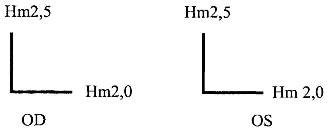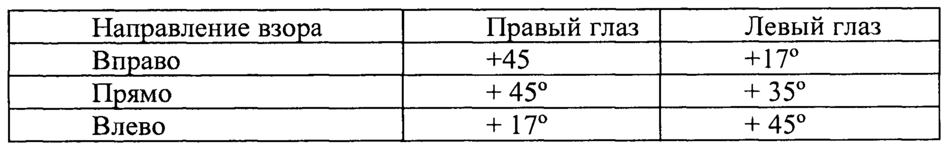 Изобретение относится к медицине, а именно к офтальмологии, и может быть использовано для подбора призматических очков детям превербального возраста с содружественным косоглазием. Содружественное косоглазие - наиболее часто встречающийся вид косоглазия у детей. При содружественном косоглазии возникает не только косметический дефект, но и нарушаются сенсорные механизмы, обеспечивающие слияние в головном мозге изображений, воспринимаемых каждым глазом, в результате чего нарушаются нормальная бинокулярность и глубинность зрения, утрачивается способность точно локализовать предметы в пространстве и ориентироваться в нем. Учитывая причины и особенности разных видов косоглазия выделен особый вид лечения - призматическая коррекция. Для проведения данного способа используются варианты стеклянных призм (призмы как в сочетании со сферическим компонентом, так и без него) и эластичных призм Френеля (ЭПФ). Однако подбор призматических очков у детей (до 4-х лет), представляет собой определенную сложность. Маленький пациент не всегда может оценить свои ощущения и точно ответить на вопросы врача (многие пациенты еще не говорят). У них снижается внимательность, усидчивость, при длительном осмотре. Поэтому, несомненно, у врача возникают трудности при подборе призматических очков у детей превербального возраста - тот возраст, когда назначение призматической коррекции наиболее оправдано. Известен способ подбора призматических очков детям с содружественным косоглазием, включающий использование компьютера и жидкокристаллических очков для разделения полей зрения двух глаз, а в качестве тестов используют текст, состоящий из букв, видимых разными глазами, а также тест фиксационной диспаратности (Ogle K.N. 1954. Fixation disparity. Am. Orthoptic J. 4:35-39). Первый из этих тестов устанавливает аккомодационно - рефракционный баланс, то есть необходимые сферы для каждого глаза, а второй - мышечный баланс, то есть необходимые призмы. Недостатками известного способа являются его ограниченные функциональные возможности, поскольку он предназначен для детей вербального возраста (с 3-4-х лет) с целью подбора комфортабельной коррекции для близи, а также необходимость использования сложного дорогостоящего оборудования. Известен способ подбора призматических очков детям с содружественным косоглазием, включающий проведение стандартного офтальмологического обследования для выявления и коррекции аметропии, определение угла косоглазия по горизонтали и вертикали на синоптофоре, подбор необходимой призмы с помощью призм из набора очковых стекол и прибора синоптофора. С призматической коррекцией на приборе - синоптофор добиваются исчезновения установочного движения при прикрывании глаза и бифовеального слияния. Невозможность устранить установочное движение или увеличение угла косоглазия в призматических очках являются противопоказанием к назначению призм. Проводят повторную проверку на цветотесте и при отсутствии бинокулярного зрения на цветотесте проводят дополнительное аппаратное ортопто-диплоптическое лечение при ношении эластичных призм Френеля. (Современная офтальмология, zrenue.com). Недостатками известного способа являются невозможность его применения у детей превербального возраста, возможность коррекции только небольших углов косоглазия до 3