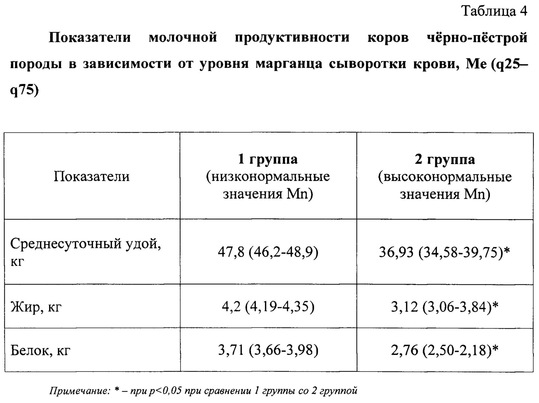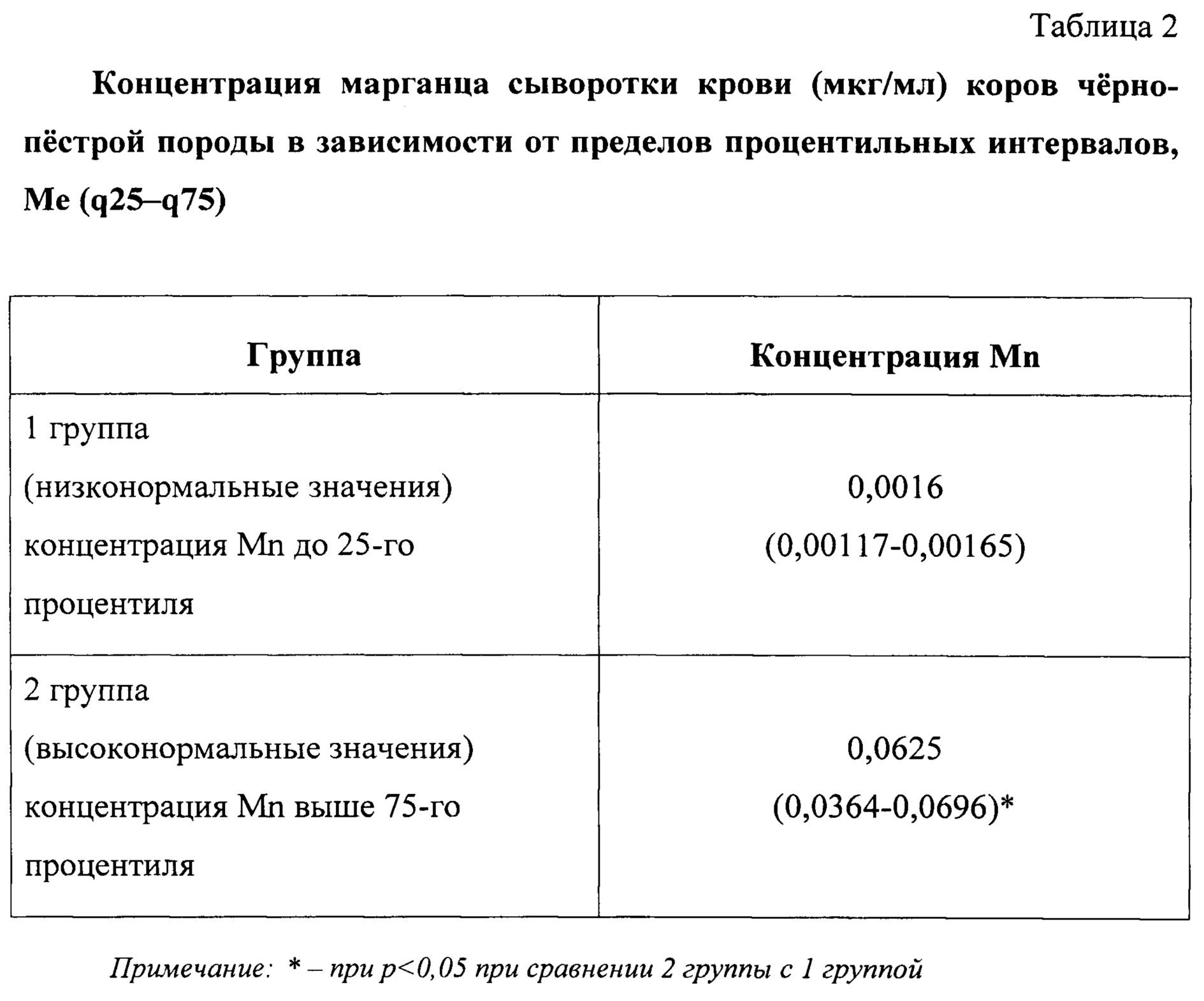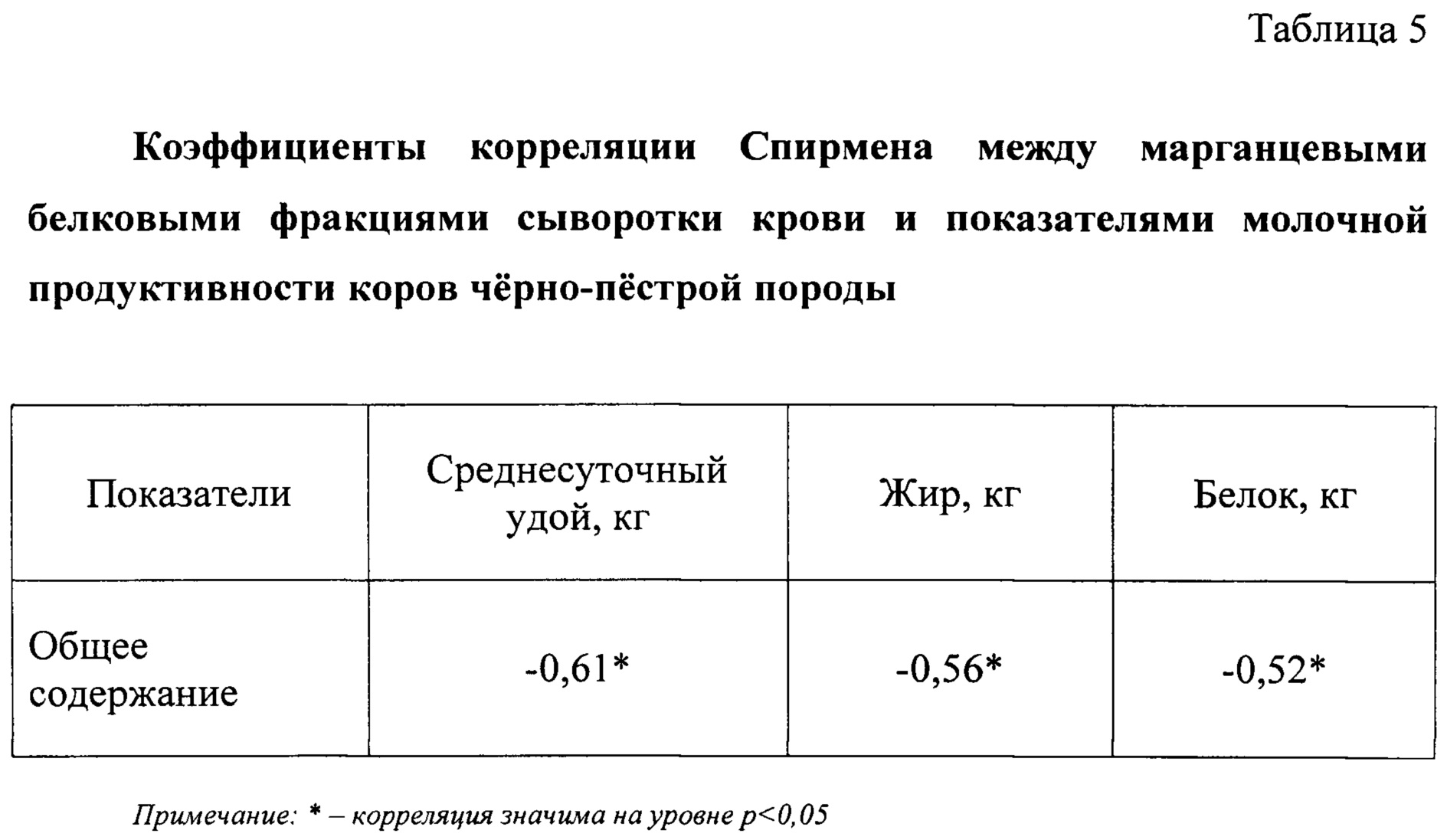 Изобретение относится к области биотехнологии. Изобретение представляет собой способ ранней оценки молочной продуктивности коров, включающий отбор образцов венозной крови в количестве не менее 6 мл из хвостовой вены коров на 30-50 сутки после отела, дальнейшее выделение сыворотки путем центрифугирования в течение 10 минут при скорости 1000 g, оценку концентрации марганца и выявление перераспределения марганца по различным белковым фракциям методами масс-спектрометрии с индуктивно связанной плазмой с высокоэффективной жидкостной хроматографией, при концентрации марганца в сыворотке крови ниже 0,0016 мкг/мл и общем содержании марганцевых форм ниже 0,00095 мкг/мл животное относят к группе с потенциально высокой молочной продуктивностью, при концентрации марганца сыворотки крови выше 0,0016 мкг/мл и общем содержании марганцевых форм выше 0,00095 мкг/мл - соответственно к группе с потенциально низкой молочной продуктивностью. Изобретение позволяет оценить на раннем возрасте молочную продуктивность на основании данных анализа спектра металлолигандных форм марганца сыворотки крови коров. 5 табл.