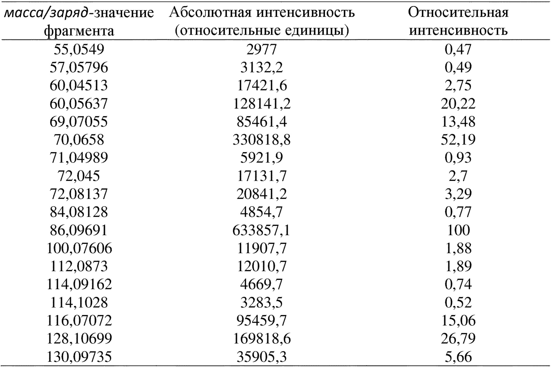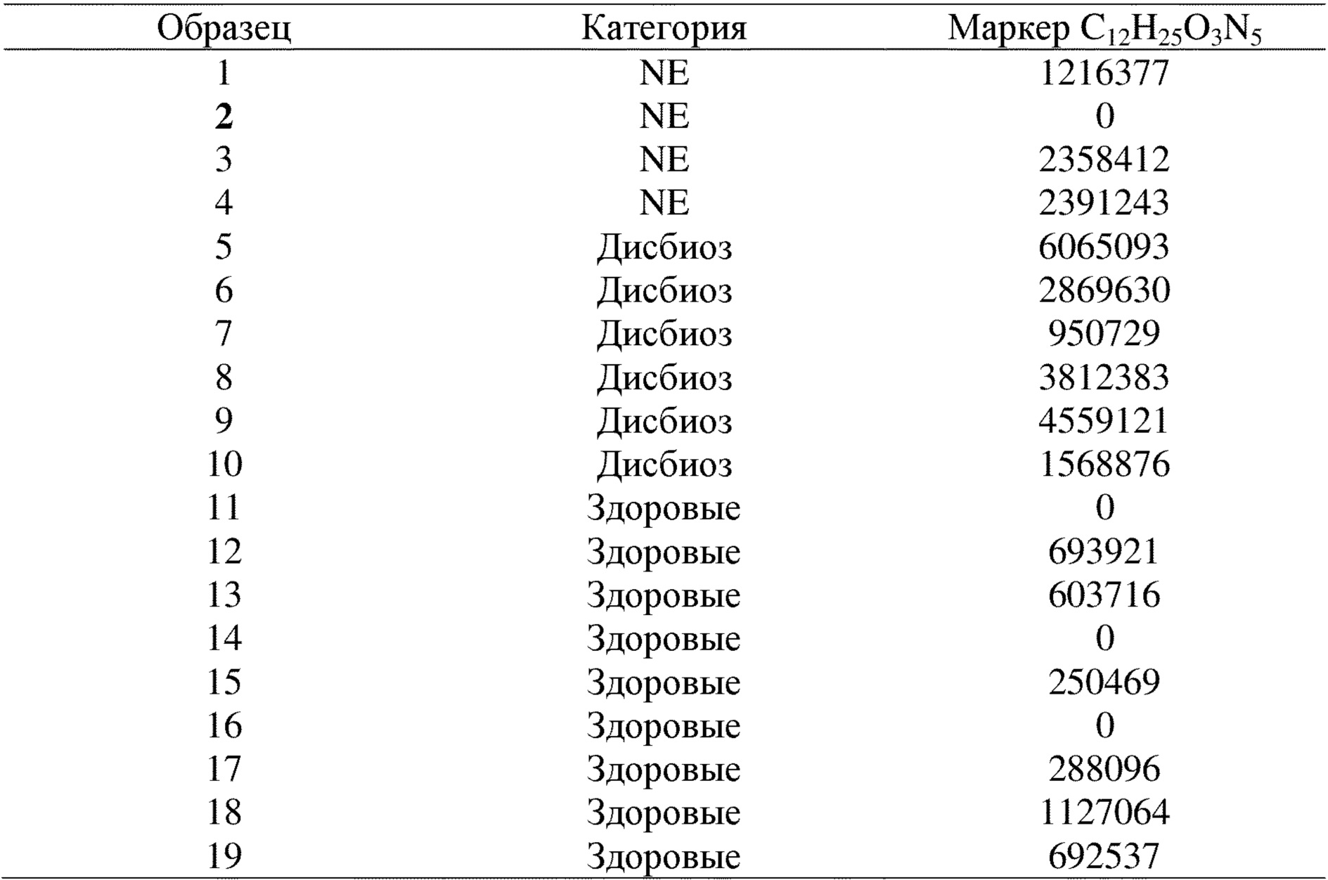 Настоящее изобретение относится к способу обнаружения дисбиоза кишечника у птиц Уровень техники изобретения Здоровое состояние кишечника является крайне важным для здоровья и продуктивности сельскохозяйственных птиц. Желудочно-кишечный тракт (ЖКТ) птиц содержит сложную микробную экосистему, содержащую триллионы микроорганизмов. Эти микроорганизмы распределены по различным нишам, выполняя различные функции, в том числе ферментацию продуктов. Разнообразие микроорганизмов в ЖКТ зависит от участка пищеварения, состояния здоровья и возраста птиц. В нормальных условиях активность, вызывающая заболевания (дисбиоз), и активность, обеспечивающая защиту от заболеваний (пробиоз), являются идеально сбалансированными. Однако даже незначительное нарушение нормальной микробиоты кишечника может приводить к дисбалансу взаимоотношений хозяин-микроорганизм. Это состояние, при котором дисбаланс оказывает неблагоприятное воздействие на хозяина, известно как дисбиоз (дисбактериоз). Дисбиоз является вредным для хозяина, приводя к воспалению и повреждению слизистой оболочки, что предрасполагает их к патологическим состояниям, таким как инфекция, вызванная Ducatelle et al. в работе “Biomarkers for monitoring intestinal health in poultry: present status and future perspectives”, VETERINARY RESEARCH, vol. 49, № 1, 8 мая 2018 г. представляют обзор биомаркеров, связанных со здоровым состоянием кишечника, которые являются общеизвестными в данной области техники, такие как D-лактат в крови и печени и бутират в содержимом слепой кишки/фекалиях. Кроме того, нарушение микробиоты, например, вследствие лечения антибиотиками, способствует росту патогенных бактерий, таких как С учетом вышеизложенного и для обеспечения возможности своевременного и целенаправленного принятия мер в отношении дисбиоза кишечника у птиц возникла острая необходимость в обеспечении быстрого и надежного неинвазивного способа Краткое описание настоящего изобретения В настоящем изобретении предусмотрен способ обнаружения дисбиоза кишечника у птиц Кроме того, настоящее изобретение относится к применению изолейцил-аргинина (C12H25O3N5, Mw= 287,20) или его изомеров в качестве маркеров для обнаружения дисбиоза кишечника у птиц, для исключения необходимости в мерах по изменению рациона или терапевтических мерах, которые следует принимать в отношении дисбиоза кишечника у птиц, или для контроля эффективности диетических или терапевтических мер, которые принимают в отношении дисбиоза кишечника у птиц. Наконец, в настоящем изобретении предусмотрен основанный на масс-спектрометрии способ обнаружения дисбиоза кишечника у птиц Ключевые аспекты настоящего изобретения подробно описаны далее. Подробное описание изобретения Авторы настоящего изобретения неожиданно обнаружили, что изолейцил-аргинин (C12H25O3N5, Mw = 287,20) или его изомеры представляют собой диагностический маркер, подходящий для обнаружения дисбиоза кишечника у птиц. Соответственно, предусмотрен способ обнаружения дисбиоза кишечника у птиц C12H25O3N5 представляет собой димерную аминокислоту, встречающуюся в форме четырех возможных изомеров: Поскольку каждый из этих изомеров может выполнять функцию биомаркера для обнаружения дисбиоза кишечника у птиц, термин «изолейцил-аргинин», используемый в контексте настоящего изобретения, включает все четыре изомера, изображенные выше. Пр