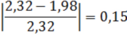 |-1,5*10-14- 9,41| / 3,96 = 2,38,