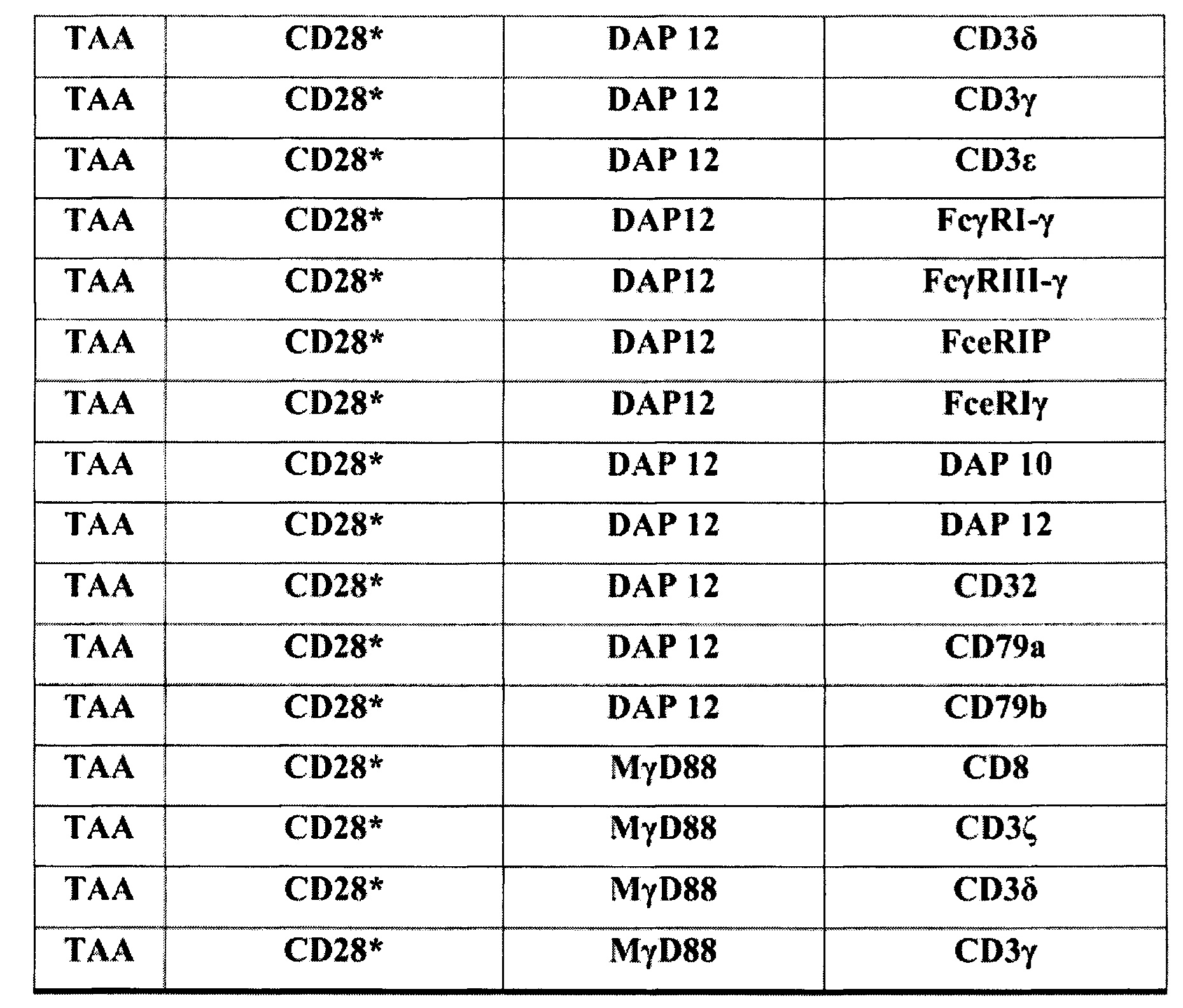 Изобретение относится к области биотехнологии, а именно к полипептиду химерного антигенного рецептора (CAR), специфически связывающему опухолеассоциированный антиген (TAA), где указанный CAR включает TAA-связывающий домен, трансмембранный домен, внутриклеточный сигнальный домен и костимуляторный сигнальный участок, в котором костимуляторный сигнальный участок включает мутированную форму цитоплазматического домена CD28. Также раскрыта иммунная эффекторная клетка, включающая молекулу нуклеиновой кислоты, кодирующую вышеуказанный полипептид CAR. Изобретение эффективно для обеспечения противоопухолевого иммунитета у субъекта-млекопитающего с TAA-экспрессирующим злокачественным новообразованием. 3 н. и 7 з.п. ф-лы, 13 ил., 2 табл., 2 пр.