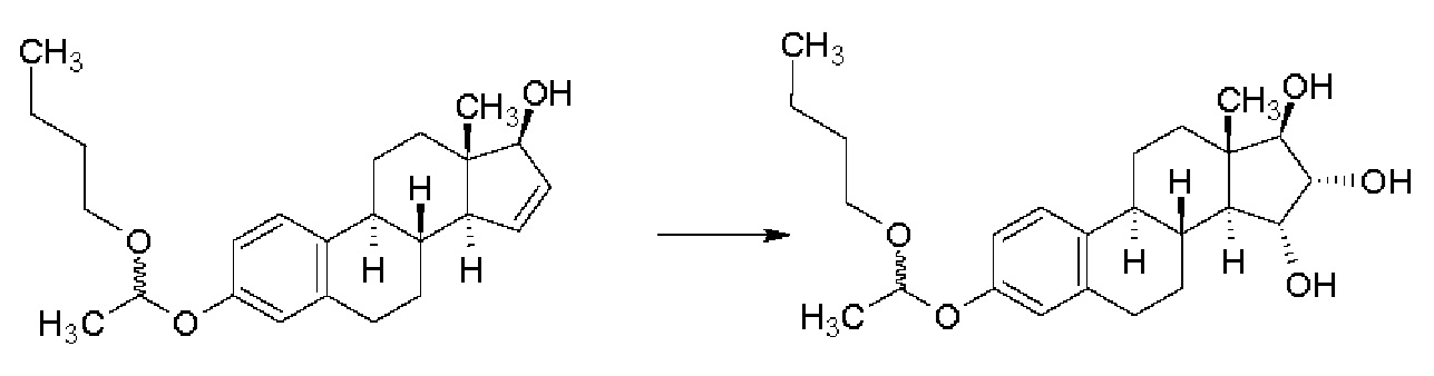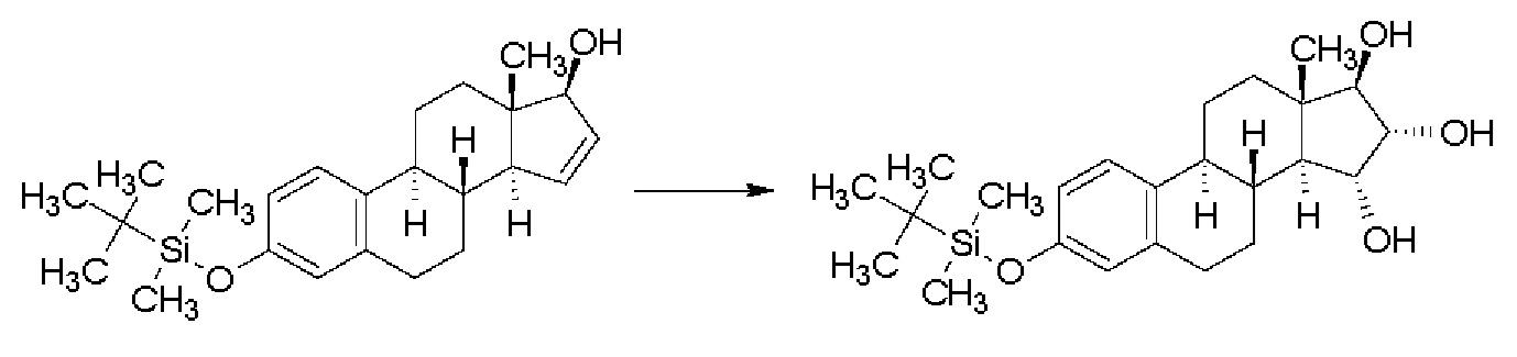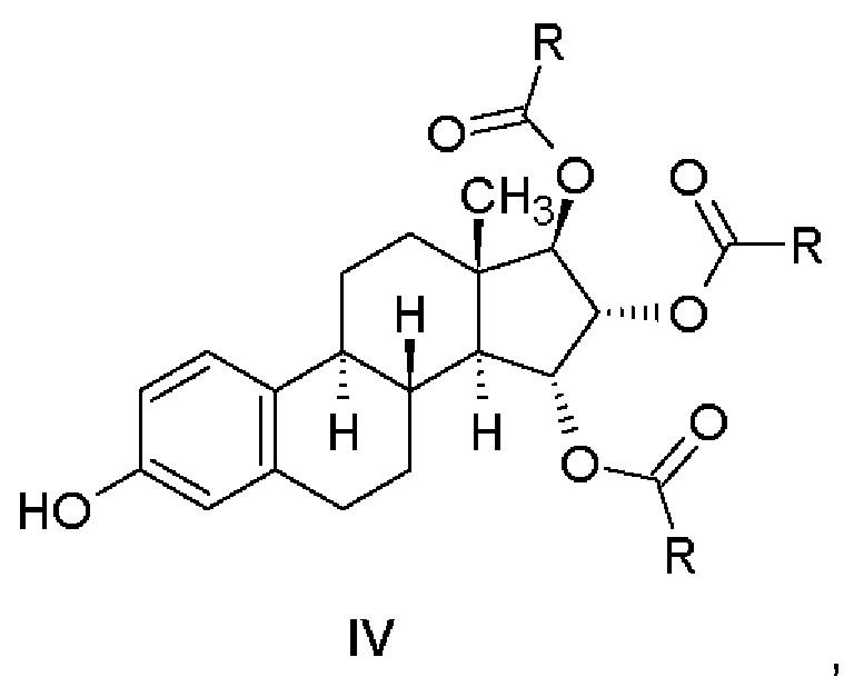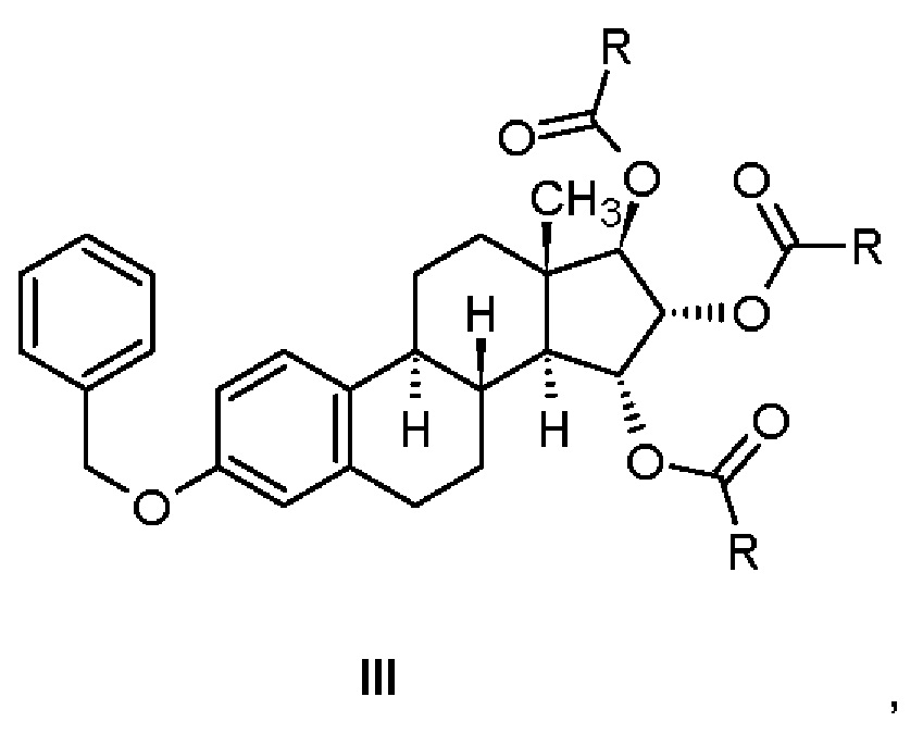 Изобретение относится к получению эстетрола (эстра-1,3,5(10)-триен-3,15α,16α,17β-тетрола), имеющего формулу (I), его производных, защищенных в положениях 3,15α, 16α, 17β, которые имеют общую формулу (III), и его 3-гидроксипроизводных, защищенных в положениях 15α,16α,17β, которые имеют общую формулу (IV), и к промежуточным соединениям, имеющим общие формулы (III) и (IV), применяемым в способе. Другой аспект изобретения относится к применению эстетрола, имеющего формулу (I), получаемого способом согласно изобретению, для изготовления фармацевтической композиции. ПРЕДШЕСТВУЮЩИЙ УРОВЕНЬ ТЕХНИКИ Эстетрол (эстра-1,3,5(10)-триен-3,15α,16α,17β-тетрол), имеющий формулу (I), представляет собой соединение, обладающее слабой эстрогенной активностью, которое обнаруживается в организме женщины и вырабатывается печенью плода во время беременности. Было обнаружено, что эстетрол способен оказывать действие при гормонозаместительной терапии, в способе лечения сухости влагалища, в способе лечения перименопаузальных симптомов (например, приступообразного ощущения жара, ночной потливости), в способе контрацепции, в способе повышения либидо, в способе лечения кожных покровов и улучшения заживления ран, в способе лечения или предотвращения (профилактики) аутоиммунного нарушения, опухолей молочных желез, рака предстательной железы и колоректальных опухолей и в способе нейрозащиты (например, при неонатальной энцефалопатии) (WO 02/094275 А1, WO 02/094276 А1, WO 02/094278 А1, WO 02/094279 А1, WO 03/041718 А1, WO 03/103684 А1, WO 03/103685 А1, WO 2004/006936 А1, WO 2004/037269 А1, WO 2007/081206 А1, WO 2008/085038 А2, WO 2013/021025 А1, WO 2013/156329 А1, WO 2018/024912 А1, WO 2018/065076 А1, WO 2019/025031 А1; Estetrol, последнее обновление - 14 мая 2019 г., https://adisinsight.springer.com/drugs/800044874; Gaspard с соавт., Maturitas 124 (2019) стр. 153, Abstract РОЭ; Apter с соавт. Eur. J. Contracept. Reprod. НС (2017) 22(4):260-267; Tskitishvili с соавт., J. Endocrinol. (2017) 232(1):85-95; Coelingh Bennick с соавт., Climacteric (2008) 11(Suppl1):47-58). Впервые синтез эстетрола, представленный Реакционной схемой 1, был описан Fishman с соавт. (Fishman, J., Guzik, Н., Tetrahedron Letters, 1967, 30:2929-2932). Восстановление исходного 15-ен-17-кето-соединения тетрагидроалюминатом лития приводит к получению соединения типа аллилового спирта, из которого образуется диацетат. Окисление диацетата тетраоксидом осмия в пиридине приводит к получению эстетролдиацетата, который при кипячении в метаноле с ацетатом калия образует эстетрол. В названной публикации не имеется данных по выходу и чистоте; для подтверждения идентичности соединения приведены температура плавления (230-235°С), удельное вращение Реакционная схема 1 В синтезе, описанном Suzuki с соавт. (Suzuki, Е., Namba, S., Kuruhara, Н., Goto, J., Matsuki, Y., Nambara, Т., Steroids, 1995, 60, 277-284), как показано на Реакционной схеме 2, 15-ен-17-ацетоксипроизводное было окислено в бензоле эквивалентным количеством тетраоксида осмия в присутствии пиридина. Полученные изомерные диацетаты разделяли колоночной хроматографией, получая 15α,16α,17β-диацетат с выходом 46% и изомерный 15β,16β,17β-диацетат с выходом 12%. Соотношение изомеров, вычисляемое из данных количеств полученных продуктов, составляет 78,9/21,1 (15α,16α/15β,16β). Щелочной гидролиз 15α,16α,17β-диацетата приводит к образованию эстетрола с выходом 67%. Данные по чистоте не приводятся, и, как указано, температура плавления продукта составляет 233-235°С. Реакционная схема 2 В патентной заявке WO 2004/041839 А2 (Pantarhei) - Реакционная схема 3 - из эстрона, защищенного посредством превращения в простой 3-бензиловый эфир, в результате 