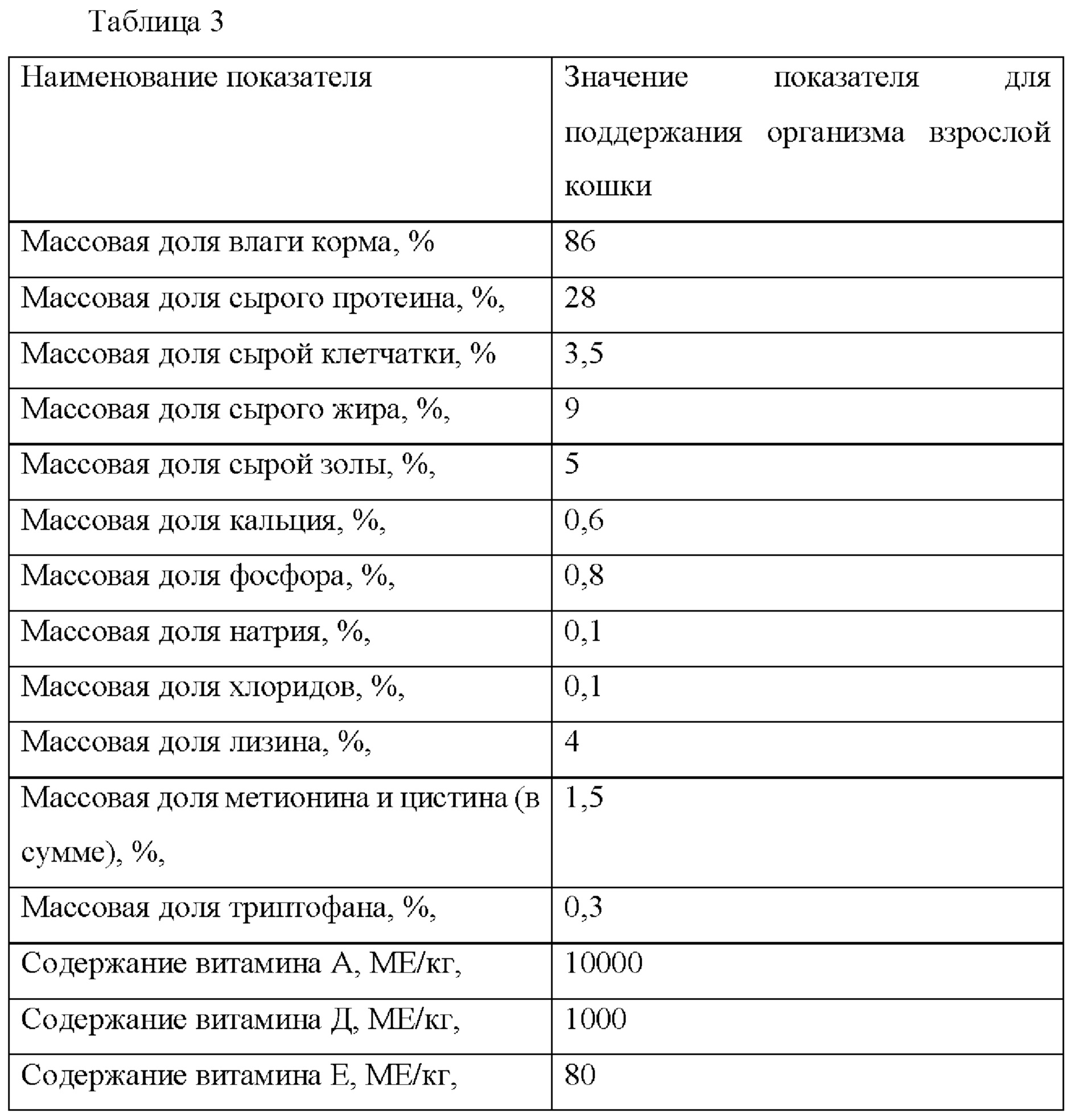Изобретение относится к пищевой промышленности, в частности к кормам для непродуктивных животных, а именно, к полнорационным кормам для кошек и собак. Известен ГОСТ Р 55453-2013, в соответствии с которым корма для непродуктивных животных (кошек и собак) относят к полнорационным, если они полностью обеспечивают физиологическую потребность животных. В указанном ГОСТе приведены показатели, которые отвечают за состав полнорационного корма для собак и кошек. Таблица 1. При этом, в полнорационных кормах для кошек и собак, изготовленных на основе натуральных продуктов, необходимое количество фосфора полностью обеспечивается за счет мясного компонента, который составляет основу корма, а содержание кальция обеспечивается, в основном, за счет синтетических минеральных добавок или костной муки. Известен полнорационный корм для собак, полученный способом по патенту РФ №2423518 (опубликован 10.07.2011 г.), содержащий мясосодержащее сырье, жиросодержащее сырье, кровь, воду, растительное сырье, пробиотическую микрофлору, а также премикс для собак. Недостатком этого корма является использование в его составе синтетических препаратов, в том числе кальция, в составе премикса, что приводит к проблемам с усвояемостью животным кальция из корма, и, соответственно к дисбалансу фосфора и кальция в его организме. Сырые продукты и сырые продукты в желе являются видовым питанием для домашних животных, в силу их строения ЖКТ, наиболее качественно усваиваемые и полноценны по витаминам и белкам. В проваренных же продуктах меняется качество белка и витаминный состав, в процессе коагуляции, что негативно влияет на домашних животных и приходится добавлять синтетические аналоги природных витаминов. Технический результат, на получение которого направлено изобретение, состоит в создании полнорационного корма из натуральных продуктов, обеспечивающего наиболее приближенную к условиям питания в естественной среде усвояемость кальция животным из корма. Технический результат достигается в полнорационном корме для кошек и собак из натуральных продуктов, содержащихся в нем в сыром и/или замороженном виде, при этом необходимое количество кальция в корме обеспечивается за счет включения в его состав костной муки или костной пасты, изготовленной из сырых костей. Предпочтительно корм содержит ингредиенты животного и растительного происхождения. Предпочтительно в качестве ингредиентов животного происхождения корм содержит в разных соотношениях, в зависимости от вида и принадлежности: мясо крупного рогатого скота, мелого рогатого скота, свиней, птицы и их субпродукты, мясную обрезь, костную пасту, калтык, селезенку, диафрагму, пищеводы, трахеи сердца, почки, хрящи, легкие, печень, уши, свиной рубец, ноги говяжьи и/или свиные, мясо голов, вымя, шкурки свиные или говяжьи, кровь, сухожилия, яйца, требуху вместе с ее содержимым или без него, рубец жвачных животных вместе с его содержимым или без него, желудки птицы вместе с их содержимым или без него, мясо механической обвалки, костную пасту, мясную обрезь, сердца, почки, хрящи, легкие, печень, кровь, сухожилия, рыбные головы, рыба, морепродукты, яйца. Указанные продукты позволяют создать полнорационный корм для кошек и собак. В качестве ингредиентов растительного происхождения корм содержит: отруби, овощи, и/или фрукты, и/и