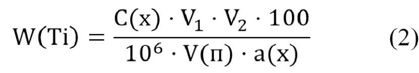 Массовую долю титана в Тизоль® геле (W(Ti), %) вычисляют по формуле (2):