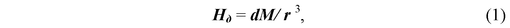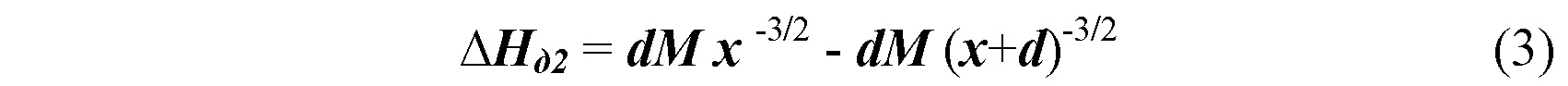 Из фиг. 1 также следует, что с учетом аппроксимации (1) разность магнитного поля диполя ∆Нд2 в точкаx D и С равна:
