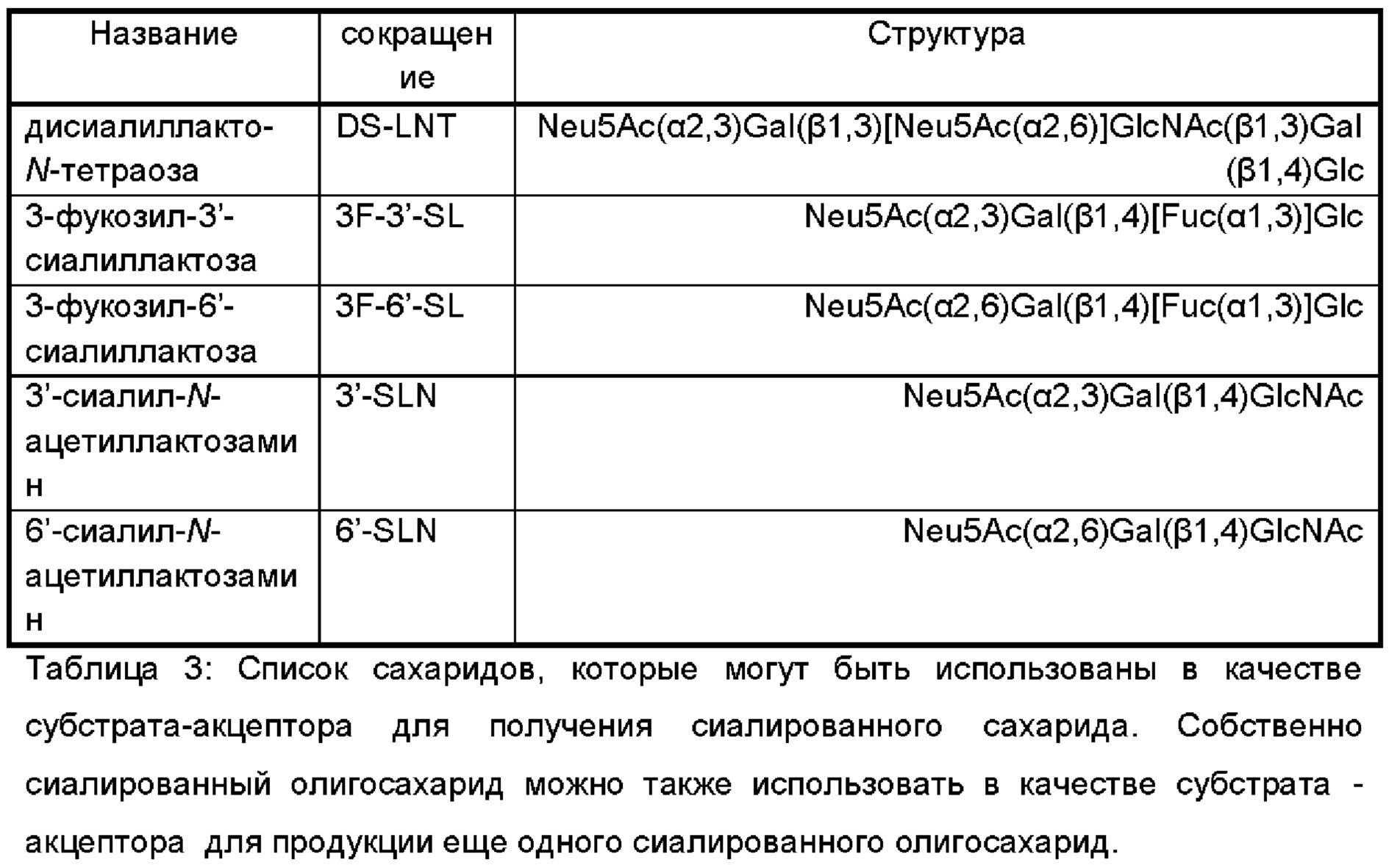 Настоящее изобретение относится к области техники генной инженерии, в частности, к генной инженерии клеток Bacillus для получения сиалированных олигосахаридов в указанных клетках Bacillus, к ферментативной продукции сиалированных олигосахаридов с использованием указанных клеток Bacillus и к применению полученных таким образом сиалированных олигосахаридов. Предшествующий уровень техники Человеческое грудное молоко обеспечивает детей грудного возраста всеми питательными веществами, в которых они нуждаются для здорового роста и развития. Сахариды, которые присутствуют в человеческом грудном молоке, представляют собой его основной компонент, превосходя жиры и белки. Помимо лактозы, которая служит источником энергии, человеческое грудное молоко содержит молекулы более сложных сахаридов, а именно, олигосахаридов. На сегодняшний день в человеческом грудном молоке идентифицировано приблизительно 200 структурно отличающихся олигосахаридов. Данные олигосахариды обнаружены в значимых концентрациях только в человеческом молоке, и они суммарно известны как олигосахариды грудного молока (ОГМ). Указанные ОГМ основаны на дисахариде - лактозе (состоящей из группировки глюкозы (Glc) и группировки галактозы (Gal)) и несут дополнительные остатки моносахаридов, которые основаны на N-ацетил-глюкозамине (GlcNAc), фукозе (Fuc), сиаловой кислоте/N-ацетилнейраминовой кислоте (NeuNAc) и/или галактозе (Gal). Концентрация и состав ОГМ в человеческом грудном молоке варьирует среди индивидуумов и на протяжении периода лактации от вплоть до 20 г/л в молозиве до 5-10 г/л в зрелом молоке. Значимое число ОГМ несет одну группировку NeuNAc. Среди данных сиалированных олигосахаридов грудного молока (СОГМ), 3'-сиалиллактоза, 6'-сиалиллактоза, сиалиллакто-N-тетраоза а, сиалиллакто-N-тетраоза b, сиалиллакто-N-тетраоза с и дисиалиллакто-N-тетраоза представляют собой наиболее распространенные члены в человеческом грудном молоке. Сиаловые кислоты (Sia) представляют собой семейство отрицательно заряженных моносахаридов с каркасом из девяти атомов углерода. Более чем 50 форм данных α-кетокислот обнаружено в природе. Наиболее распространенной сиаловой кислотой, по-видимому, является N-ацетилнейраминовая кислота (NANA -от англ. N-acetylneuraminic acid, NeuNAc, Neu5Ac). Сиаловые кислоты находятся в качестве концевых моносахаридных группировок гликанов, которые находятся в гликоконъюгатах (гликопротеины и гликолипиды) на поверхности клеток позвоночных и высших беспозвоночных. Сиаловые кислоты являются компонентами липополисахаридов и капсульных полисахаридов патогенных бактерий, включая Escherichia coli K1, Haemophilus influenzae, Haemophilus ducreyi, Pateurella multocida, Neisseria gonorrhoeae, Neisseria meningitidis, Campylobacter jejuni и Streptococcus agalactiae. Наблюдали, что сиалированные ОГМ поддерживают устойчивость грудного ребенка к энтеропатогенным бактериям и вирусам. Что интересно, недавние исследования, кроме того, продемонстрировали защитное действие длинноцепочечных СОГМ в отношении некротического энтероколита, который является одним из наиболее распространенных и смертельных заболеваний у недоношенных новорожденных. Кроме того, показано, что сиалированные олигосахариды нейтрализуют энтеротоксины разных патогенных микробов, включая Escherichia coli, Vibrio cholerae и Salmonella. Кроме того, обнаружено, что сиалированные олигосахариды препятствуют колонизации кишечника Helicobact