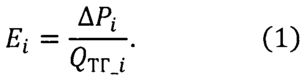 , обеспечивающего ликвидацию не соответствия текущих значений Qплан и Qфакт АСУ ТП ДКС реализует поставленную задачу изменяя расход сырого газа, проходящего через ДКС и одновременно перераспределяет создаваемый перепад давления между входом и выходом ДКС между ее очередями параллельно работающих ГГПА. Это перераспределение перепада давления АСУ ТП ДКС осуществляет с помощью ПИД-регуляторов и блоков расчета коэффициента пропорциональности для них, реализованных на базе АСУ ТП ДКС. Перераспределение перепада давления АСУ ТП ДКС осуществляет в направлении снижения потребления топливного газа, т. е. повышения общей энергоэффективности ДКС. Для этого АСУ ТП ДКС непрерывно контролирует энергоэффективность Ei каждой i-ой очереди ГГПА ДКС, которую она определяет путем вычисления отношения перепада давления ΔPi, который получают при сжатии газа, перекачиваемого этой очередью, к расходу топливного газа в единицу времени QТГ_i потребляемого этой же очередью, из соотношения: