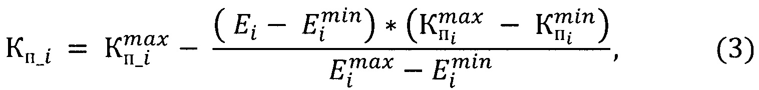 . При этом каждый i-ый блок расчета определяет значение коэффициента пропорциональности Кп_i для своего i-ого ПИД-регулятора, управляющего производительностью i-ой очереди ГГПА по следующим формулам: