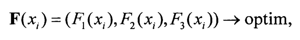 S и F или выбирают из Z вариантов, вариант по векторному критерию F(xi)=(Fl(xj),F2(xi),FJ(xi))→optim, где F1(xi) - суммарная длина линий связи