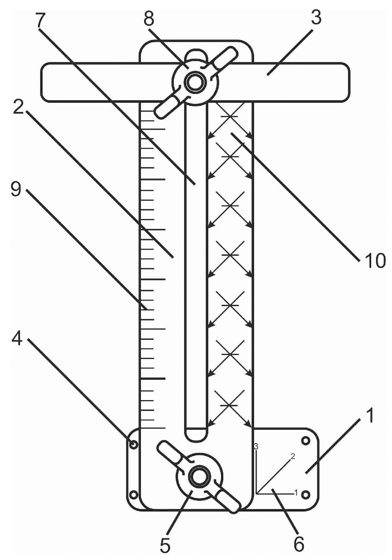 Область техники, к которой относится изобретение Изобретение относится к вспомогательным устройствам для отработки технических приемов, применяемых при выполнении стрижек, в частности используемых для обучения стрижке (МПК A45D24/36, G09B19/00). Уровень техники Из уровня техники известно УСТРОЙСТВО ДЛЯ ОТРАБОТКИ СТРИЖКИ ВОЛОС (WO2015026006A1, опубл. 26.02.2015), представляющее собой выдвижные пластины, прикрепляемые к манекен-голове, позволяющие изменять их длину с тем, чтобы обучаемый имел возможность ориентироваться на них при срезе волос по длине, и способ, в котором обучаемые отрабатывают навык среза волос нужной длины с использованием данного устройства. Недостатком данного устройства является то, что его размещение на манекен-голове лишает обучающихся возможности правильно отчесать прядь в нужном направлении, т.е. выполнить операцию, непосредственно предшествующую срезу волос. Также известен Инструмент для обучения парикмахерским технологиям красоты и модель для обучения парикмахерским технологиям красоты (GB2455450A, опубл. 17.06.2009), представляющий собой полукольцо, надеваемое на голову манекена для стрижки, с множеством пластинок, расположенных перпендикулярно поверхности головы, и снабженных шкалами углов для отработки среза волос под углом, и способ обучения, в котором данное устройство используется для отработки навыков среза волос под заданным углом. Недостатком аналога является конструкция инструмента, позволяющая отрабатывать срез только на прядях, отчесанных перпендикулярно поверхности головы. Наиболее близким по технической сущности является НАПРАВЛЯЮЩЕЕ УСТРОЙСТВО ДЛЯ СТРИЖКИ ВОЛОС И СПОСОБЫ ЕГО ИЗГОТОВЛЕНИЯ И ИСПОЛЬЗОВАНИЯ (US2023200511A1, опубл. 29.06.2023), включающее в себя основание, прикрепляемое к манекен-голове, со множеством рычагов, прикрепленных под разными углами, для отработки навыка направления пряди волос в нужном направлении отчесыванием. Также известен способ его использования для отработки обучающимися навыков отчесывания прядей в нужном направлении под нужным углом. Недостатком прототипа является конструкция устройства, согласно которой, произведя отчесывание пряди в нужном направлении, далее обучающийся самостоятельно должен определить необходимую длину и угол среза пряди или воспользоваться другими вспомогательными средствами. Недостатками прототипа и аналогов является необходимость смены приспособлений для обучения навыкам отчесывания прядей в нужном направлении и под нужным углом и навыков среза волос на определенной длине и под определенным углом, которые являются базовыми для выполнения большинства стрижек, в то время, как при выполнении реальных стрижек, эти операции, в основном, идут последовательно и связаны между собой, вследствие чего предпочтительно вырабатывать у обучающихся навык слитного выполнения операций по отчесыванию и срезу прядей волос. Раскрытие сущности изобретения Задачей изобретения является устранение недостатков аналогов за счет создания устройства для комплексной отработки навыков отчесывания прядей и среза волос, включая направление, угол и длину, а также способа обучения стрижке с использованием данного устройства. Указанную задачу решает заявленное изобретение, которое, в первом своем аспекте, представляет собой УСТРОЙСТВО ДЛЯ ОТРАБОТКИ НАВЫКОВ СТР