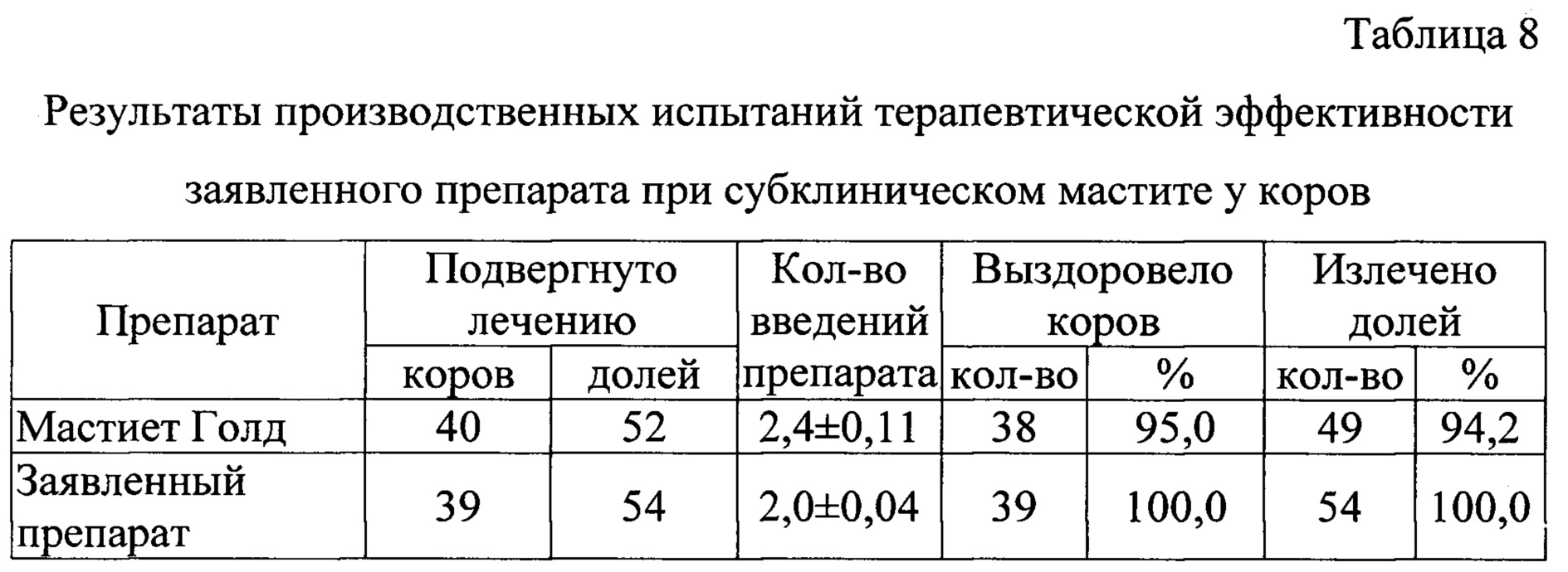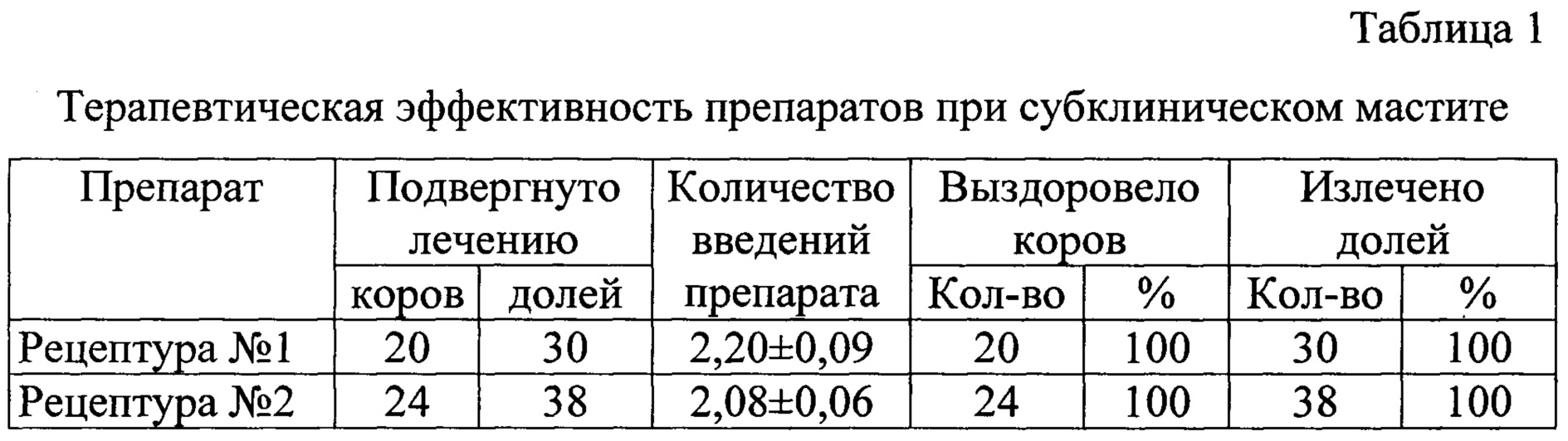 Изобретение относится к области ветеринарии и представляет собой препарат для лечения мастита у коров в период лактации, содержащий цефалоспорин, фторхинолон, преднизолон и основу. В качестве цефалоспорина используют цефтиофура гидрохлорид, в качестве фторхинолона - марбофлоксацин, в качестве основы - эмульгатор, моноглицериды дистиллированные и масло вазелиновое при следующем соотношении компонентов, мас. %: марбофлоксацин - 3,20-4,80; цефтиофура гидрохлорид - 1,80-2,70; преднизолон - 0,32-0,48; моноглицериды дистиллированные - 1,00; эмульгатор - 3,00; масло вазелиновое - до 100. Изобретение позволяет повысить терапевтическую эффективность лечения и сократить сроки браковки молока. 10 табл., 6 пр.