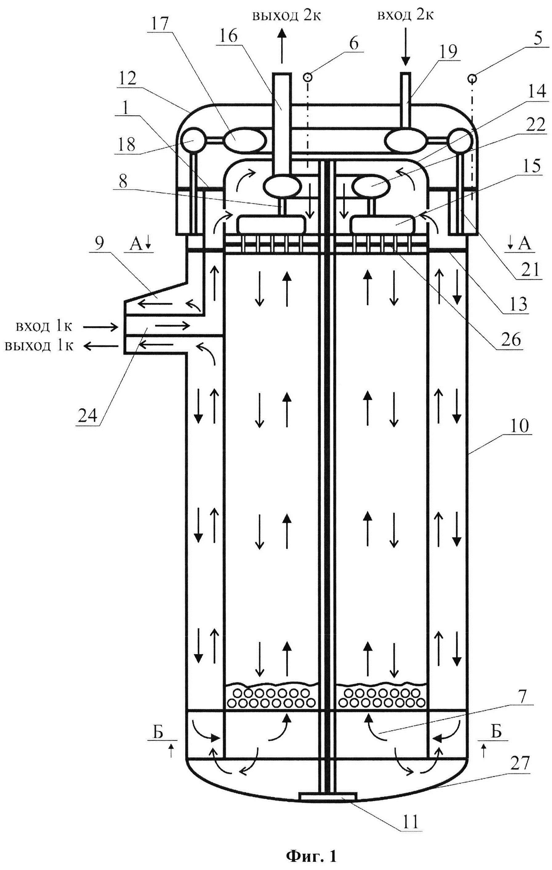 Изобретение относится к теплообменной технике, а именно к парогенераторам, и может быть преимущественно использовано в качестве одного из элементов комплектующего оборудования, входящего в состав реакторных установок (РУ). В частности, изобретение может найти применение на ЯЭУ судов, плавучих атомных электростанций (ПАЭС) и атомных станций малой мощности (АСММ). Уровень техники Из уровня техники известны различные конструкции парогенераторов, например, парогенераторы по патентам РФ №2263845, 2221196, 27673 и др. включающие чаще вертикальный корпус, пучок теплообменных труб, входной и выходной коллекторы теплоносителя. Совокупность признаков, наиболее близкая к совокупности существенных признаков заявляемого решения, присуща известной конструкции парогенератора ПГ-28 с. Техническое описание ПГ-28 с, а также схема циркуляции теплоносителя и рабочего тела приведены в «ПАРОГЕНЕРАТОР ПГ-28 с. Руководство по эксплуатации» ИЖЕР.501421.008 РЭ 18.01.2008 г. Известная конструкция содержит ряд признаков, совпадающих с существенными признаками заявляемого изобретения: параметры текучих сред первого и второго контуров (давления, температуры, расходы); материалы конструктивных элементов ПГ. ПГ-28 с состоит из: - прочноплотного корпуса в виде сварной вертикальной цилиндрической камеры с приваренным к ней в нижней части штампованным эллиптическим днищем, с главным патрубком типа «труба в трубе» для подвода-отвода теплоносителя 1 контура и узлами крепления на баке металоводной защиты (МВЗ); - внутреннего устройства (ВУ), включающего крышку ПГ с узлами подвода-отвода среды 2 контура и трубную систему змеевикового типа с дроссельными пакетами. Крышка в сборе с трубной системой приварена к верхней части корпуса ПГ. Трубная система ПГ выполнена в виде 100 цилиндрических винтовых трубных змеевиков, образующих поверхность нагрева экономайзерного, испарительного и пароперегревательных участков. Дистанционирование змеевиков производится с помощью дистанционирующих полос, устанавливаемых при навивке змеевиков групповым методом, снаружи змеевики окружены цилиндрической обечайкой. Для удаления газа из верхней части трубной системы и повышения теплоотвода в ПГ при аварийной разгерметизации 1 контура в наружной обечайке трубной системы выполнены 8 отверстий, равномерно расположенных по окружности на расстоянии 160 мм ниже оси главного патрубка. В центральной части крышки установлен питательный коллектор для подвода питательной воды. Питательная камера, образована нижней поверхностью крышки ПГ и трубной доской. Питательный и паровой коллекторы, разделены на 20 соответствующих автономных секций. В трубной доске питательной камеры расположено 20 отверстий для коллекторных раздаточных питательных труб с поперечным сечением 22x2,5 мм. Каждая из 20 коллекторных раздаточных питательных труб замкнута на свою секцию, расположенную в питательной камере. Коллекторная раздаточная труба состоит из двух частей: верхняя первая - изготовлена из аустенитной нержавеющей стали 0Х18Н10Т, нижняя вторая, расположенная под трубной доской питательного коллектора и находящаяся в объеме, заполненном теплоносителем 1 контура -изготовлена из титанового сплава ПТ-7М. Эти трубы, изготовленные из металлических сплавов разного типа, соединены между собой при помощи прочноплотного ре