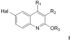 Область техники Группа изобретений относится к области фармакологии и медицины, а именно, к фармацевтической композиции для лечения заболеваний, вызванных бета-коронавирусами, включая SARS-CoV-2, включающей кислородсодержащее производное 6-галогенхинолина формулы I. Уровень техники Вспышка COVID-19, вызванная SARS-CoV-2, по всему миру и связанные с ней последствия, являются угрозой для общественного здравоохранения и экономики многих стран. Отсутствие специальной терапии против нового вируса требует поиска лекарственных средств, противодействующих инфекции. Коронавирусы (Coronaviridae) - это большое семейство РНК-содержащих вирусов, способных инфицировать человека и некоторых животных. Современная классификация включает четыре группы - альфа-, бета-, гамма- и дельта-коронавирусы [Helena Jane Maier, Erica Bickerton, Paul Britton / Coronaviruses: An Overview of Their Replication and Pathogenesis // Coronaviruses – 2015; 1282: 1-23]. Род Betacoronavirus считается наиболее опасным для человека. У людей коронавирусы могут вызывать целый ряд заболеваний - от легких форм острой респираторной инфекции до тяжелого острого респираторного синдрома. В частности, три коронавируса из известных β-коронавирусов - SARS-CoV-1, MERS-CoV и SARS-CoV-2 (источник пандемии COVID-19), вызывают более тяжелые симптомы и приводят к более высокому уровню смертности. При этом отсутствуют специфические высокоэффективные терапевтические средства, проявляющие высокую биологическую активность в ингибировании репродукции бета-коронавируса. Во всем мире ведется интенсивный поиск терапевтических средств для профилактики и лечения COVID-19. В этой связи Всемирная организация здравоохранения и национальные министерства здравоохранения выпускают постоянно обновляющиеся методические рекомендации по профилактике, диагностике и лечению коронавирусной инфекции с использованием существующих терапевтических средств, ранее предназначенных для других вирусных инфекций (грипп, СПИД, Эбола и др.). Наиболее широкое распространение при лечении COVID-19 на сегодняшний день получил препарат Фавипиравир (ФВП) [https://static-0.rosminzdrav.ru/system/attachments/attaches/000/050/584/original/03062020_%D0%9CR_COVID-19_v7.pdf], где в качестве действующего вещества использован 6-фторо-3-гидрокси-2-пиразинкарбоксамид, а также Ремдесивир (РМД) [https://nypost.com/2020/05/01/fda-approves-remdesivir-as-emergeney-coronavirus-treatment/], и Апротинин (АПР) [A. Azimi.TMPRSS2 inhibitors, Bromhexine, Aprotinin, Camostat and Nafamostat as potential treatments for COVID-19, 10.31226/osf.io/a3rvm]. Известно применение даларгина (диацетата гексапепида) для лечения коронавирусной инфекции COVID-19 [RU2728939, 2020], который входит в состав коммерчески доступных средств, используемых ранее для лечения язвенной болезни желудка и двенадцатиперстной кишки, панкреатита и панкреонекроза. Препарат может быть использован в форме ингаляций или инъекций, при этом лекарственное средство содержит даларгин в количестве от 0,1 до 50 мг в одной дозе. Известно применение статинов, используемых для снижения и контроля уровня холестерина, снижения смертности, вероятности развития и тяжести сердечно-сосудистых катастроф - таких, как инфаркт миокарда и инсульт, в терапии коронавирусной инфекции [CN 111603465, 2020; CN 111632053, 2020; CN 111588720, 2020; CN 111617065, 2020; CN 111588719, 2020]. Лекарственное средство находится в форме геля, мягкой капсулы, перорального препарата, инъекции, лиофилизированного порошка для инъекций или раствора для инфузии. Однако известные до сих пор соединения и средства, предлагаем