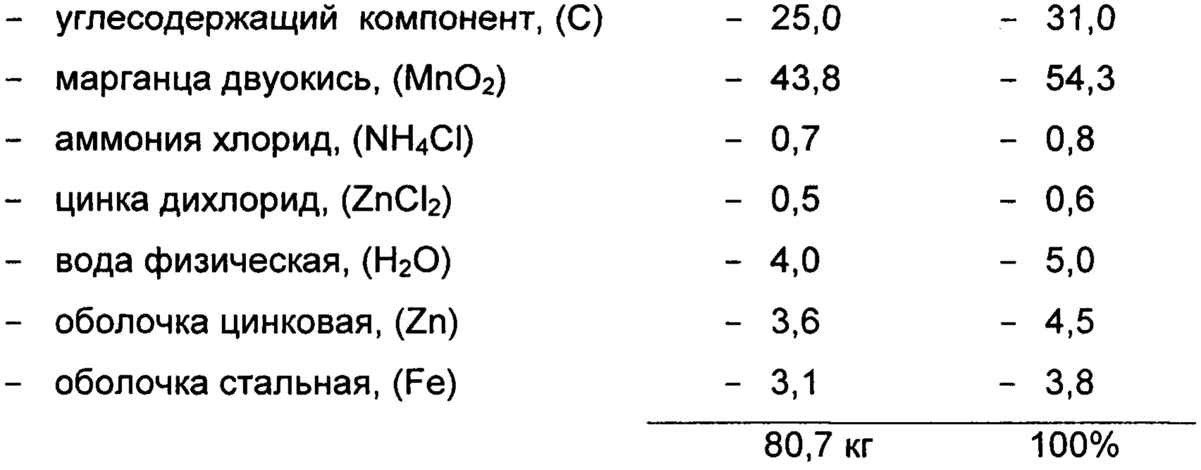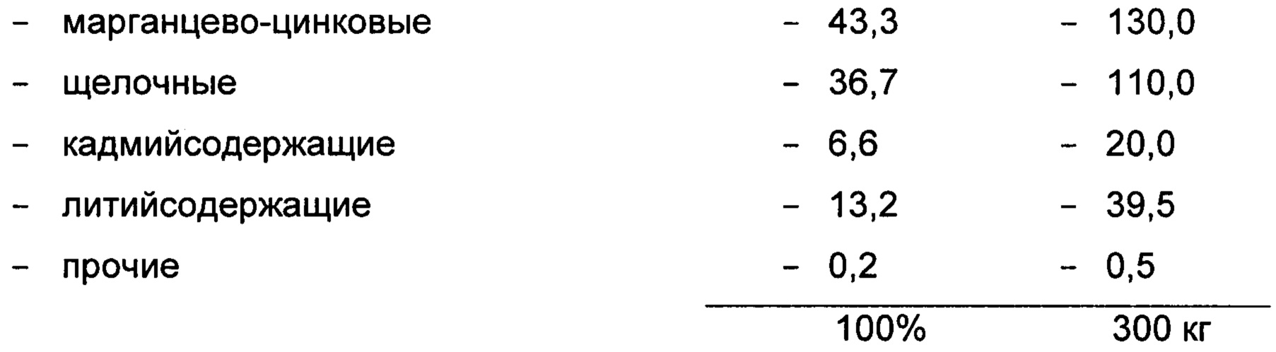 Изобретение относится к области переработки вторичного сырья и может быть использовано при утилизации отработанной смеси, содержащей марганцево-цинковые, щелочные, кадмийсодержащие и литийсодержащие химические источники тока. Анализ патентной информации Известен способ утилизации электрических батареек, печатных плат с радиодеталями и элементами электронных схем (SU 1621818 A3), в котором неразобранную смесь батареек и элементов подвергают пиролизу при температуре 450…650°С, шлаки обрабатывают борфтористоводородной кислотой с последующим электролизом жидкой субстанции и с отделением осажденных материалов. Пиролизный газ сжигается. Недостатки известного способа: - отсутствует действующее промышленное оборудование, пригодное для реализации изобретения; - применяется дорогостоящая борфтористоводородная кислота; - пиролиз при температуре 450…650°С, не способствующий испарению цветных металлов; - сжигаемый пиролизный газ содержит хлор, азотные токсины и требует тщательной очистки. Известен способ утилизации отработанных химических источников тока (RU 2164955 С1), включающий измельчение, обжиг сырья, магнитную сепарацию, кислотное выщелачивание с последующим электролизом, осаждение цинка на катоде, а диоксида марганца на аноде. Недостатки известного способа: - отсутствует действующее промышленное оборудование, пригодное для реализации изобретения; - изобретение узконаправленное, рассчитанное на утилизацию только «марганцево-цинковых» систем; - не предусмотрена утилизация хлорсодержащих солей, содержащихся в «марганцево-цинковых» ХИТ. Известен способ переработки отработанных солевых и щелочных элементов питания (RU 2763076 С1), включающий измельчение, термическую обработку измельченной массы, выщелачивание в растворе щелочи, катодное осаждение цинка из щелочного раствора, удаление из раствора хлоридов. Термическая обработка измельченной массы осуществляется при температурах от 500 до 800°С в течение до двух часов, используя в качестве окислителя пироксид натрия, расход которого составляет до 65% от сухой массы. Недостатки известного способа: - отсутствие действующего промышленного оборудования, пригодного для реализации изобретения; - применение в больших количествах дорогого, токсичного продукта - пироксида натрия. Известен японский способ переработки отработанных источников тока (JP61- 261443). Способ включает дробление элементов и прокаливание при температурах от 400 до 1000°С в течение трех часов, при этом горючие материалы (бумага, угольные стержни, графит, сажа, пластмассы, крахмал, смолы) сгорают. Прокаленную массу вторично измельчают, извлекая металлический лом. Порошок обрабатывают соляной кислотой. В растворе содержатся марганец, цинк, железо, латунь. Раствор нейтрализуют аммиачной водой. Растворенные элементы извлекают химическими методами. Недостатки известного способа: - продолжительный по времени энергозатратный процесс, негативно влияющий на производительность; - для сжигания горючих составляющих элементов необходим окислитель (воздух), каким образом он используется неизвестно; - продукты сгорания горючих веществ токсичны, подавление вредностей не предусмотрено. Известен способ переработки электродной массы отрицательных электродов никель-кадмий-железистых щелочных аккумуляторов (RU 2015101917 А), включающий вы