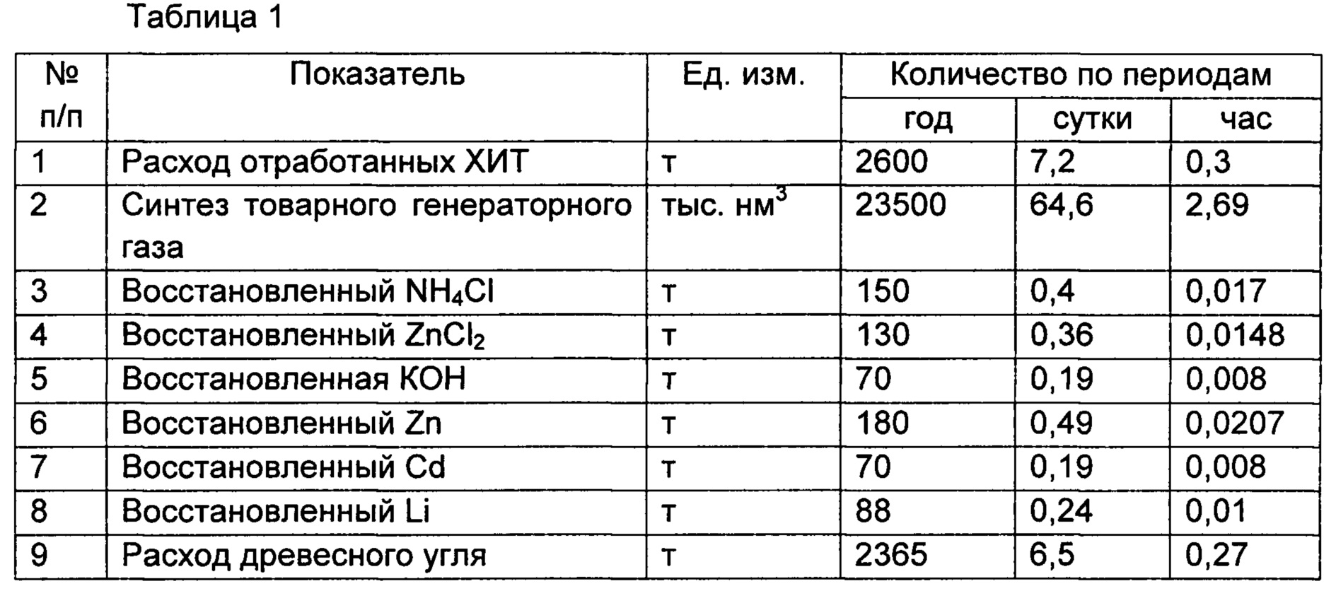 1. Способ утилизации отработанной смеси, содержащей марганцево-цинковые, щелочные, кадмийсодержащие и литийсодержащие химические источники тока (ХИТ), включающий механическое измельчение в дезинтеграторах, оборудованных плоскими ножами, выщелачивание механически измельченных ХИТ в вибрационных мельницах мокрого помола в присутствии воды с температурой 50-60°С с образованием раствора, содержащего хлорид аммония, дихлорид цинка, гидроксид калия, и выщелоченного продукта, который термически обрабатывают в вагранках. 2. Способ по п. 1, отличающийся тем, что раствор после выщелачивания ХИТ обезвоживают, восстанавливая кристаллическую структуру аммония хлорида, дихлорида цинка, гидроксид калия. 3. Способ по п. 1, отличающийся тем, что в вагранках одновременно производят энергоноситель - генераторный газ, пригодный для использования в качестве газообразного топлива. 4. Способ по п. 3, отличающийся тем, что выходящий из вагранки генераторный газ, содержащий пары цинка, кадмия, лития и ртути, охлаждают с получением порошков.