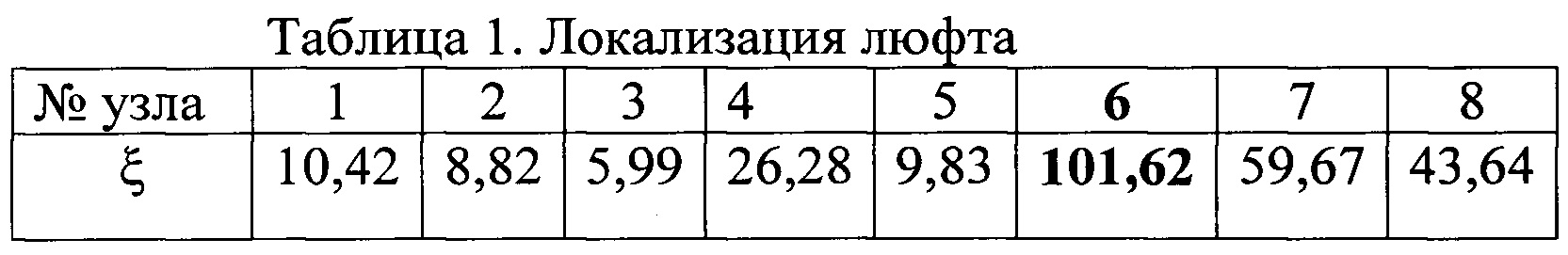 Изобретение относится к области неразрушающего контроля и диагностики технического состояния конструкций. В конструкциях изделий могут иметься зазоры, которые условно делятся на два вида. Одни из них - зазоры в соединениях (в основном подвижных) составных частей конструкций - вводятся для обеспечения нормального функционирования этих соединений. Величины таких зазоров обычно нормируются. Другой вид - люфты, возникающие в результате нарушения технологии изготовления и в процессе эксплуатации изделий. Поскольку нормированные зазоры увеличиваются, как правило, в процессе эксплуатации, то оба этих вида могут привести к повышенной нагруженности и износу деталей, изменению динамических характеристик и ухудшению технического состояния изделий. Поэтому зазоры необходимо контролировать. Широкое распространение в машиностроении нашли методы оценки технического состояния объектов по параметрам вибраций. Вибрационные методы можно условно разделить на пассивные и активные. В первом случае исследуются сигналы, получаемые при функционировании контролируемого объекта, а во втором - соответствующая информация получается при приложении к объекту специально заданных воздействий. Пассивные методы применяются для диагностирования, в основном, машин и механизмов, имеющих вращающиеся части (подшипники, соединительные муфты, механические передачи и т.д.). В вибрационной диагностике конструкций применяются активные методы, предназначенные для выявления люфтов, трещин и разрушений в конструкциях в процессе их эксплуатации. Методы основаны на том, что такие повреждения оказывают влияние на жесткость и демпфирование механических систем, что обусловливает изменение характеристик их отклика на вибрационное воздействие. Это изменение используется как информативный признак наличия повреждения. Для такого контроля могут использоваться, например, методы обнаружения трещин. Это объясняется тем, что динамические эффекты, возникающие вследствие схлопывания «берегов» трещины под действием тестовой гармонической силы, схожи с таковыми при соударении элементов конструкций, между которыми имеется зазор. Известен метод вибродиагностики, в котором собственные частоты определялись по свободным колебаниям конструкции на основном резонансе, а также на суб- и супергармонических резонансах системы. Такие резонансы возникают в линейной системе в результате появления дефектов. Собственные частоты оценивались с точек зрения их чувствительности к наличию трещины и эффективности применения для диагностики повреждения (Bovsunovsky А.P., Matveyev V.V. Vibrational diagnostics parameters of fatigue damage in elastic bodies. Mechanical Fatigue of Metals: Proceeding of the 13-th International Colloquium (MFM) (Tern., 25-28 September 2006), pp. 212-218; свидетельство SU 1415178 G01N 29/04). Недостатком этого метода является то, что он применим для однородных конструкций, например, лопаток авиационных двигателей. Известен метод обнаружения дефектов в материале упругой конструкции, при котором возбуждают колебания эталонной и исследуемой конструкций, выбирают несколько форм колебаний, определяют для этих форм резонансные частоты колебаний конструкций, а о возникновении дефекта судят по разности значений резонансных частот эталонной и исследуемой конструкций (А.В. Косицын «Метод вибродиагностики дефектов упругих конструкций на основе анализа собс