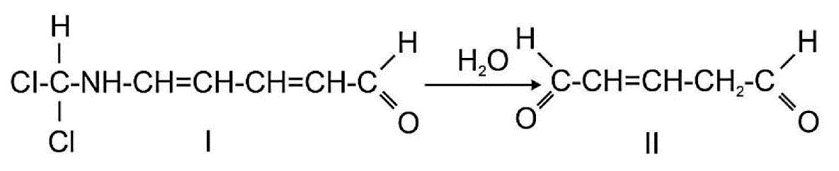 Под влиянием щелочи соль пиридиния превращается в хлорпроизводное (I), при гидролизе которого образуется глутаконовый альдегид (II), имеющий красную окраску:
