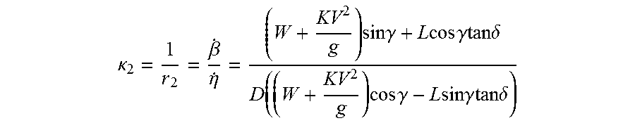 [0000]κ2=1r2=β.η.=(W+KV2g)sinγ+LcosγtanδD((W+KV2g)cosγ-Lsinγtanδ)