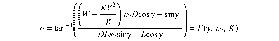 [0000]δ=tan-1((W+KV2g)[κ2Dcosγ-sinγ]DLκ2sinγ+Lcosγ)=F(γ,κ2,K)