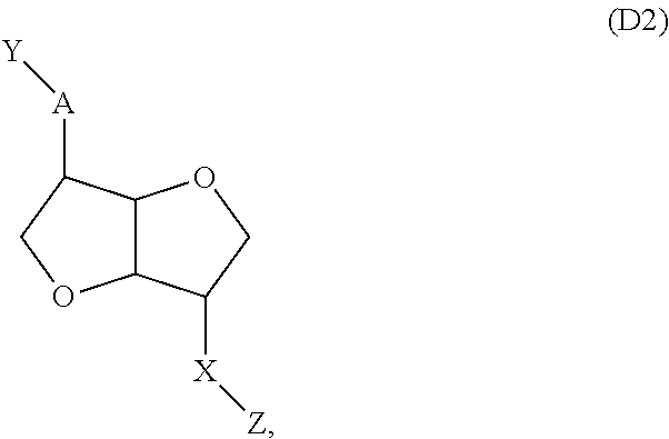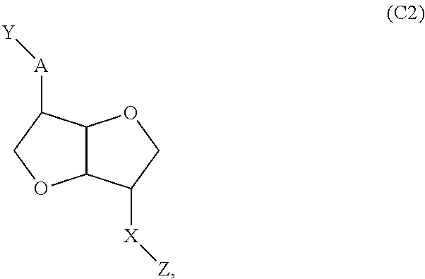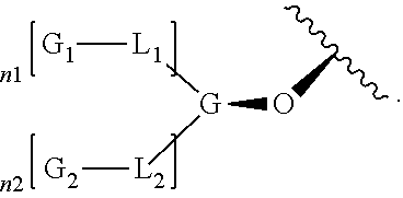 [0015]In some embodiments, each G, G1, G2, G3, G4, and G5 is independently a furanose or pyranose moiety.