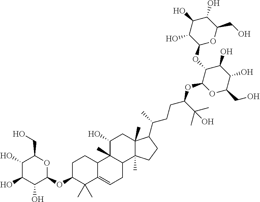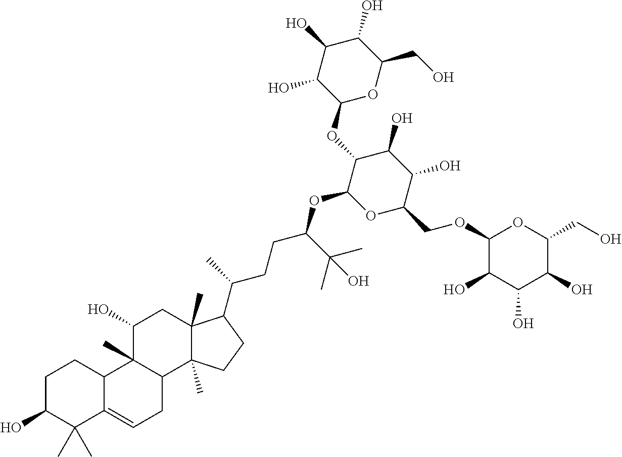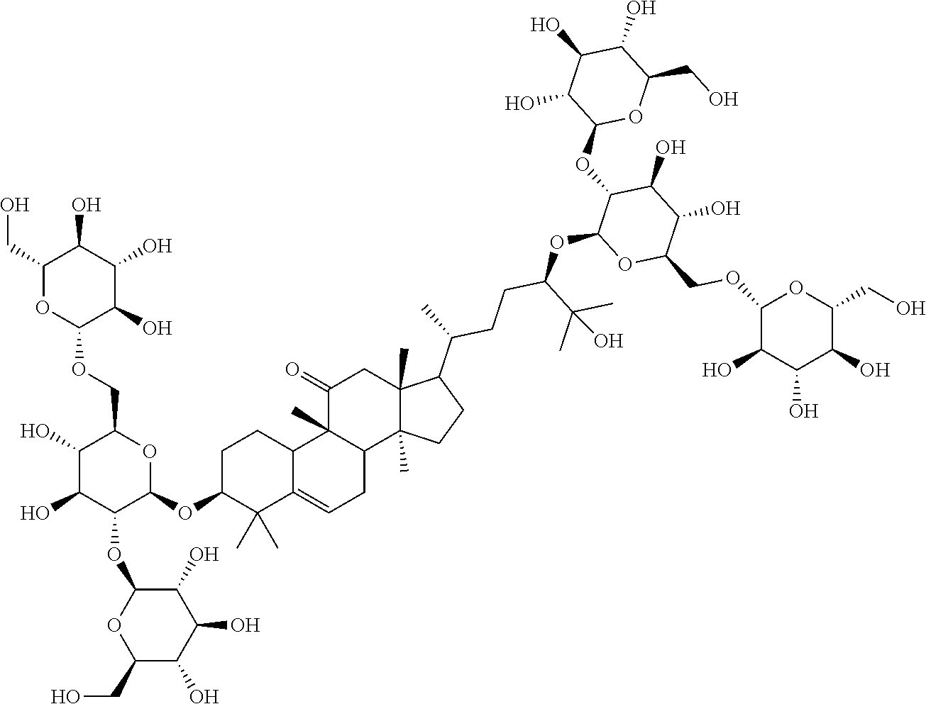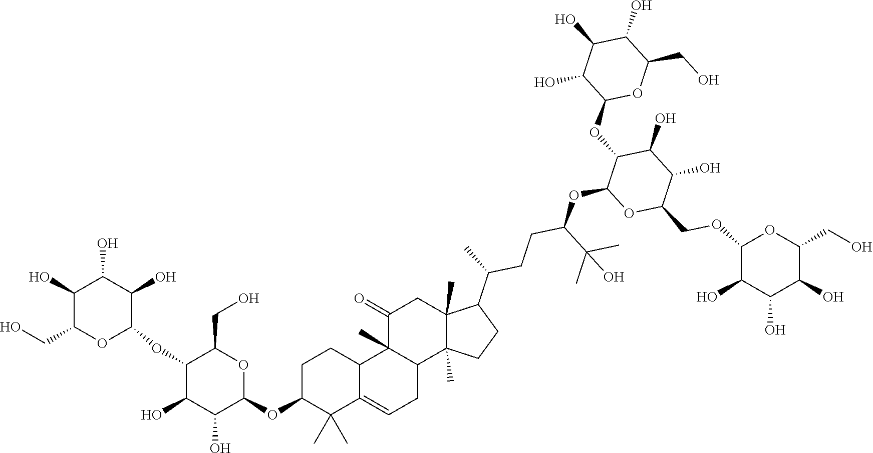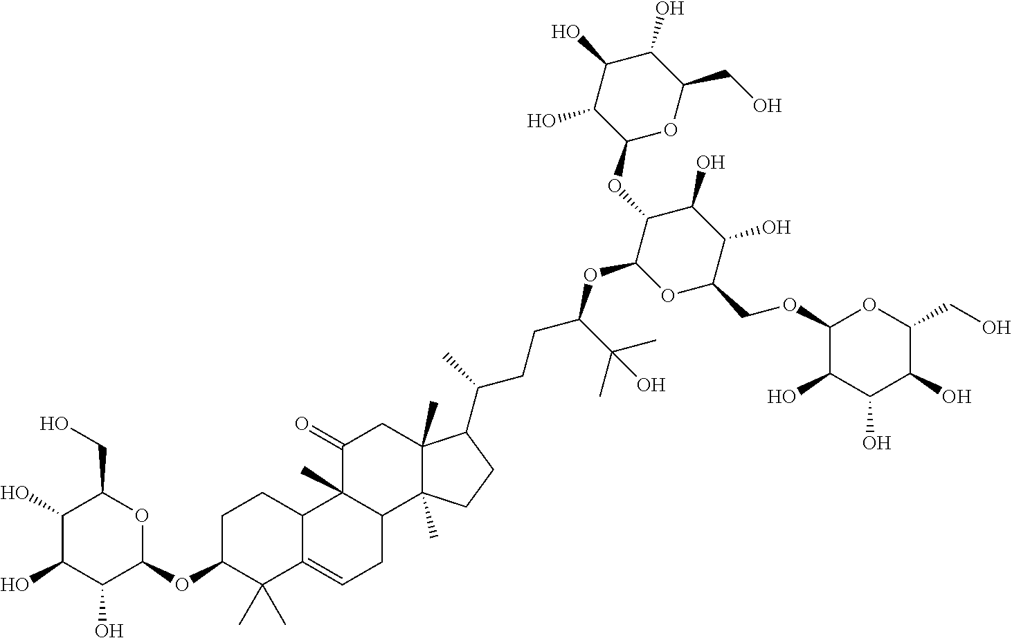 [0025]In some embodiments, the composition comprises one or more additional compounds selected from the group consisting of mogrol, 11-oxo-mogrol,
