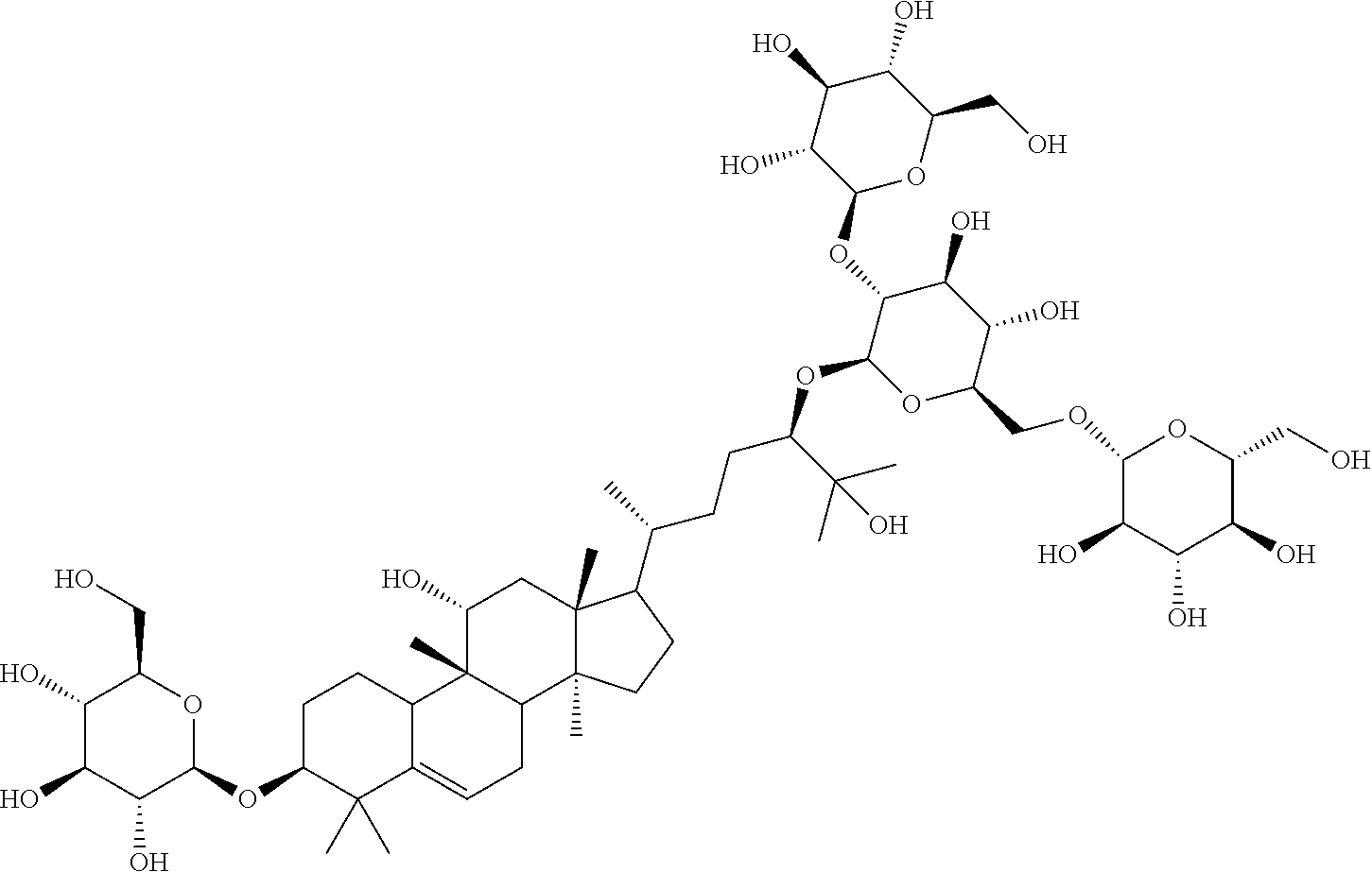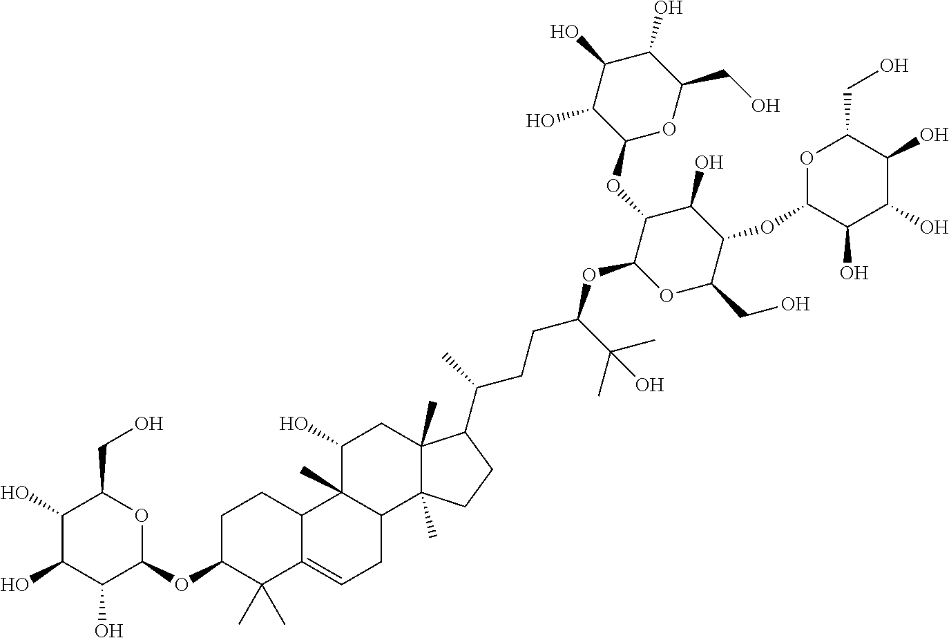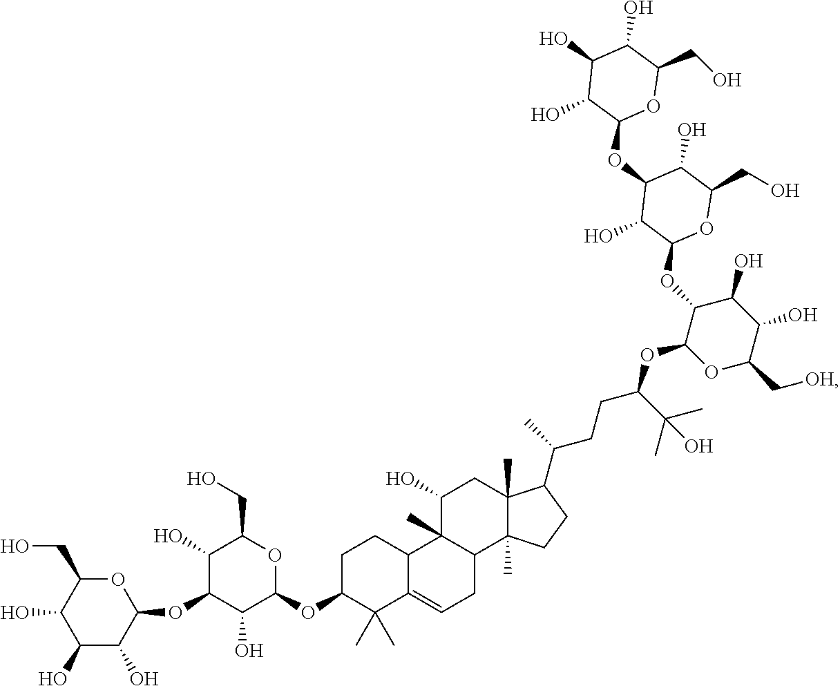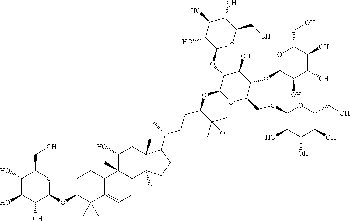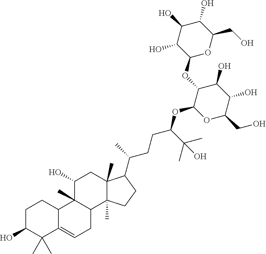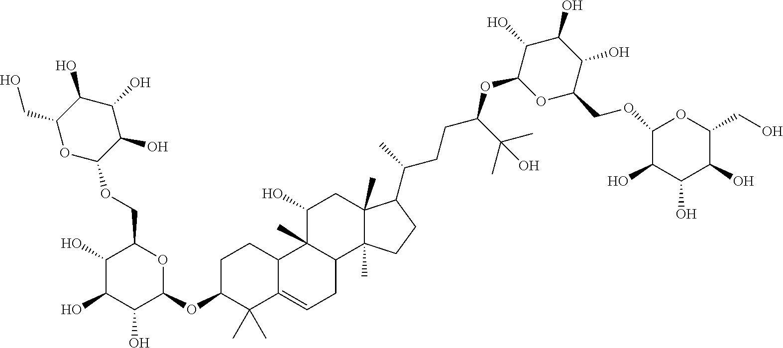 [0025]In some embodiments, the composition comprises one or more additional compounds selected from the group consisting of mogrol, 11-oxo-mogrol,