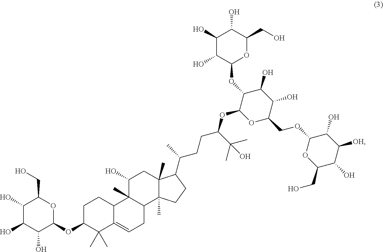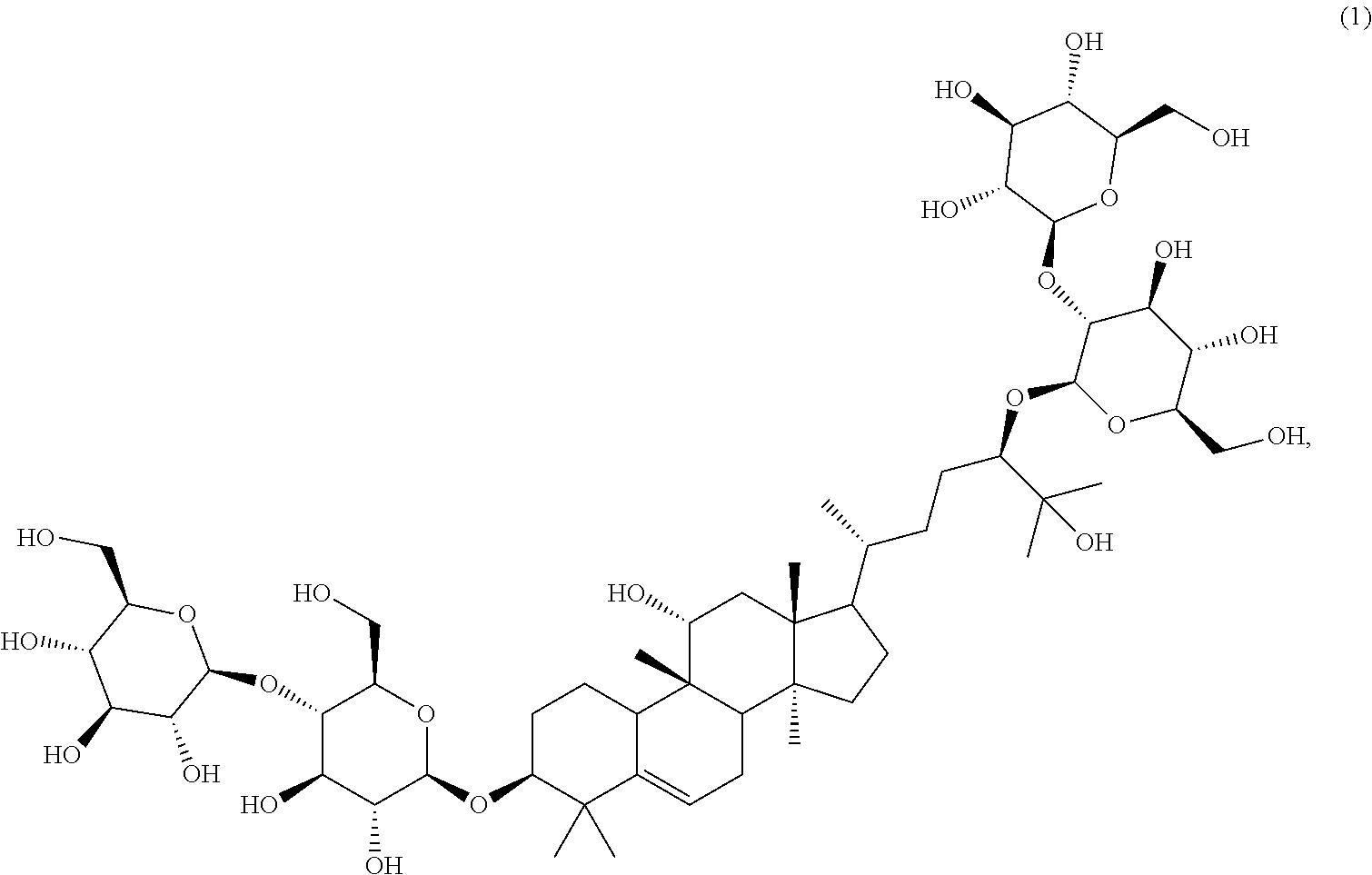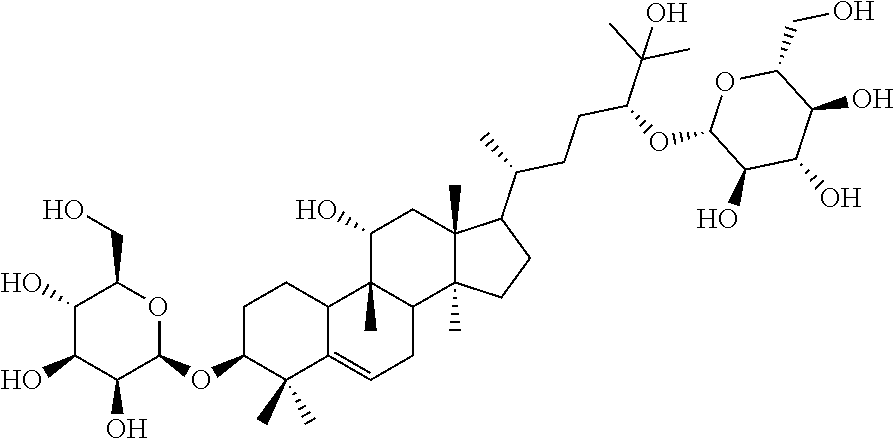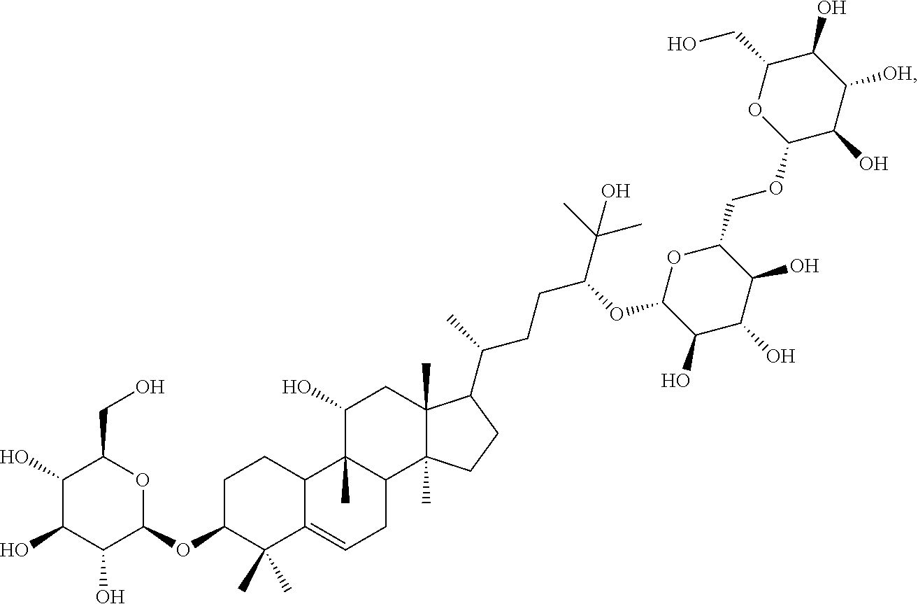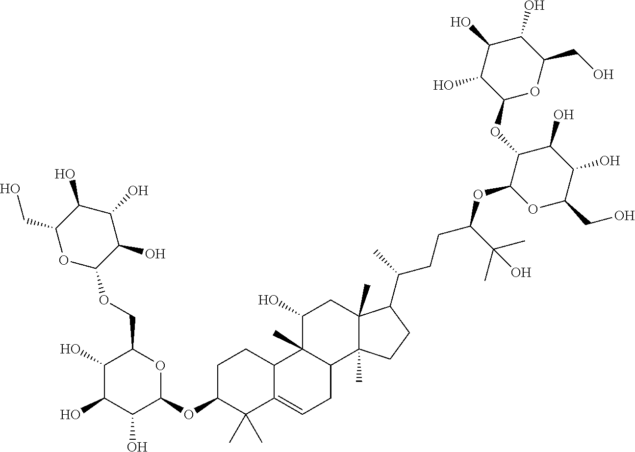 [0025]In some embodiments, the composition comprises one or more additional compounds selected from the group consisting of mogrol, 11-oxo-mogrol,